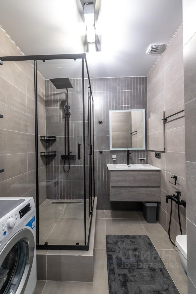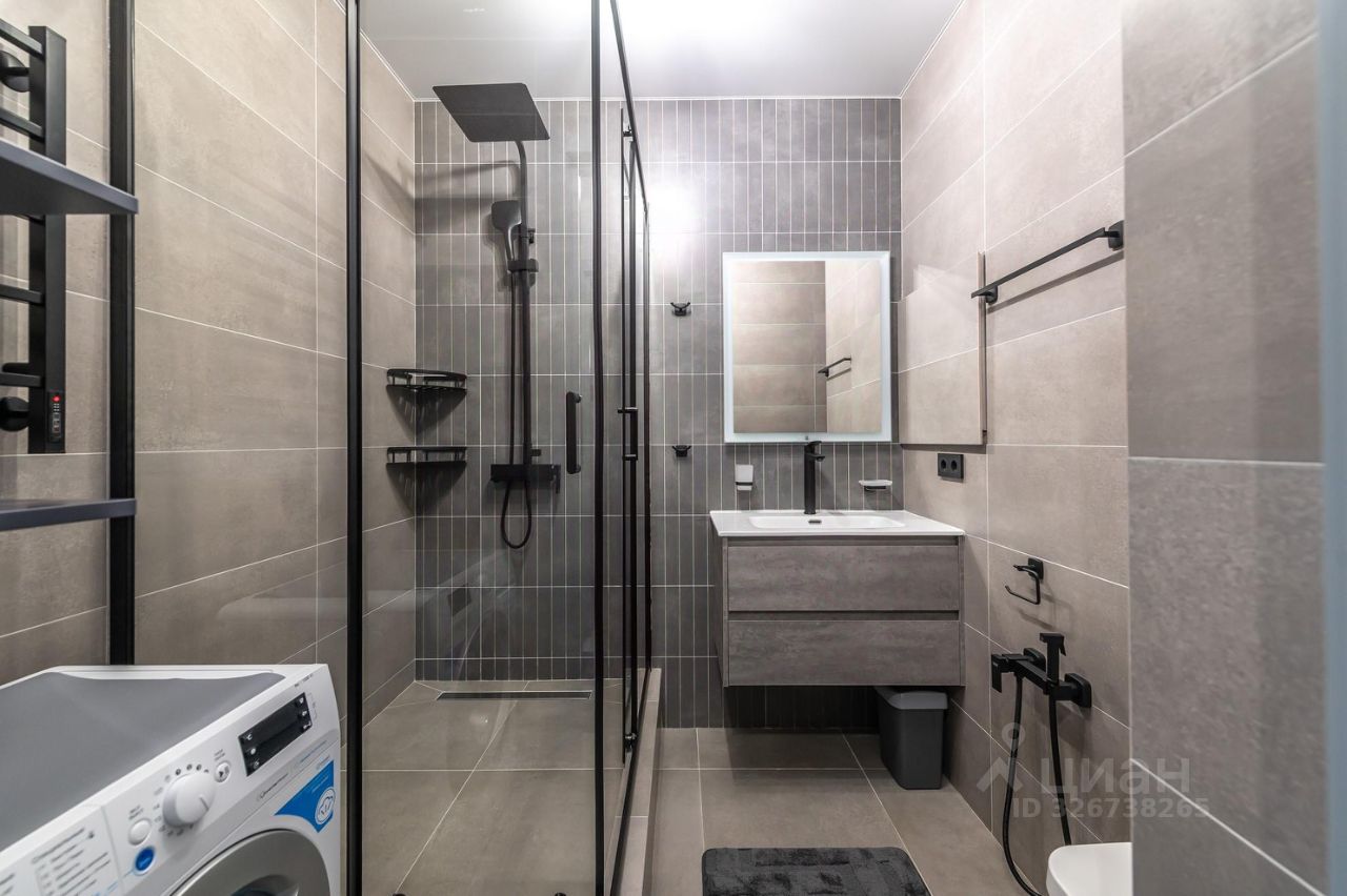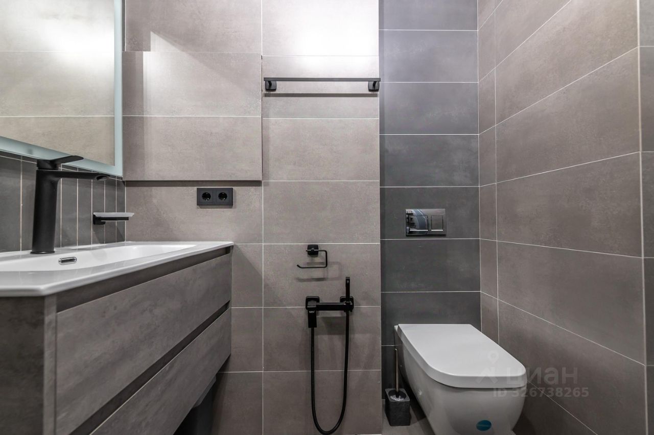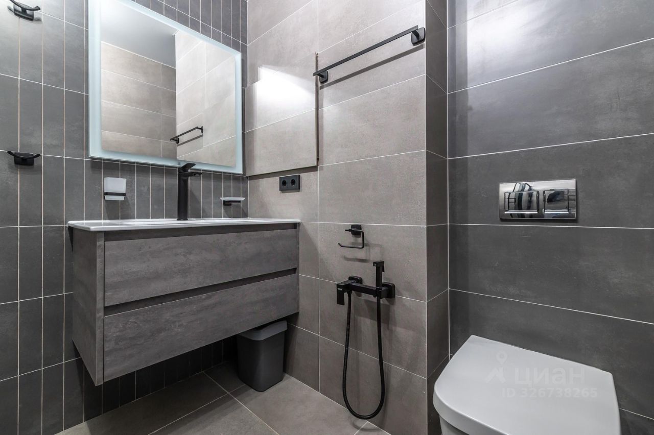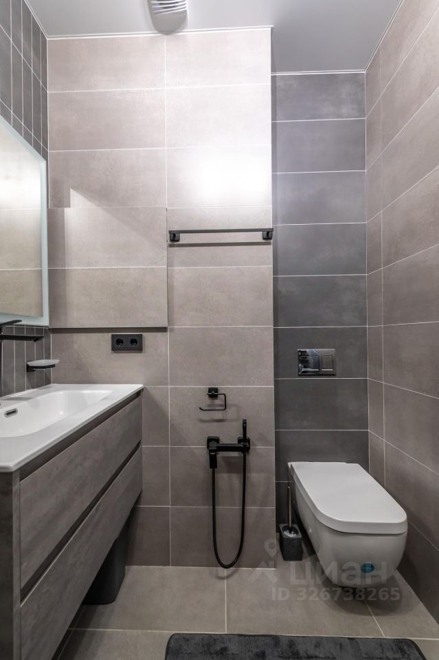Большой просторный санузел с большой комфортной душевой , широкая раковина 90 см., подвесной унитаз с гигиеническим душем.