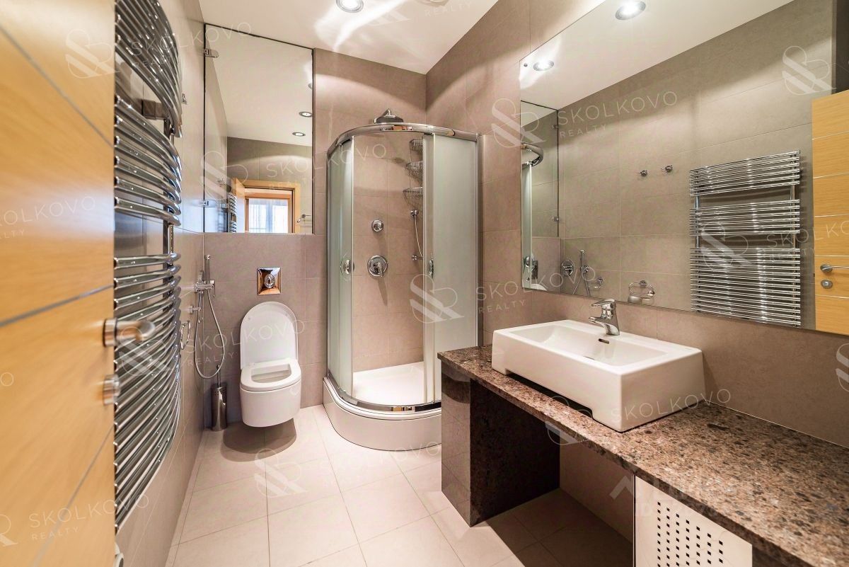 Квартира полностью меблирована и оснащена бытовой техникой от признанных мировых брендов, таких как посудомоечная машина, кондиционер, стиральная машина и телевизор. На кухне установлен современный кухонный гарнитур с встроенной техникой от немецкой компании MIELE. Для комфортного проживания предусмотрены полы с подогревом, скоростной интернет и спутниковое телевидение.