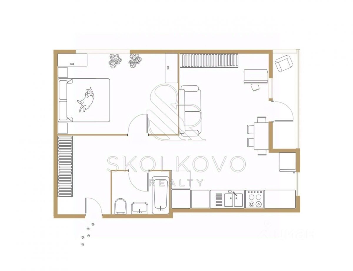 В квартире представлена: Просторная кухня-гостиная. Изолированная спальня с комфортной большой кроватью. Совмещенный санузел с ванной. Застекленный балкон.
