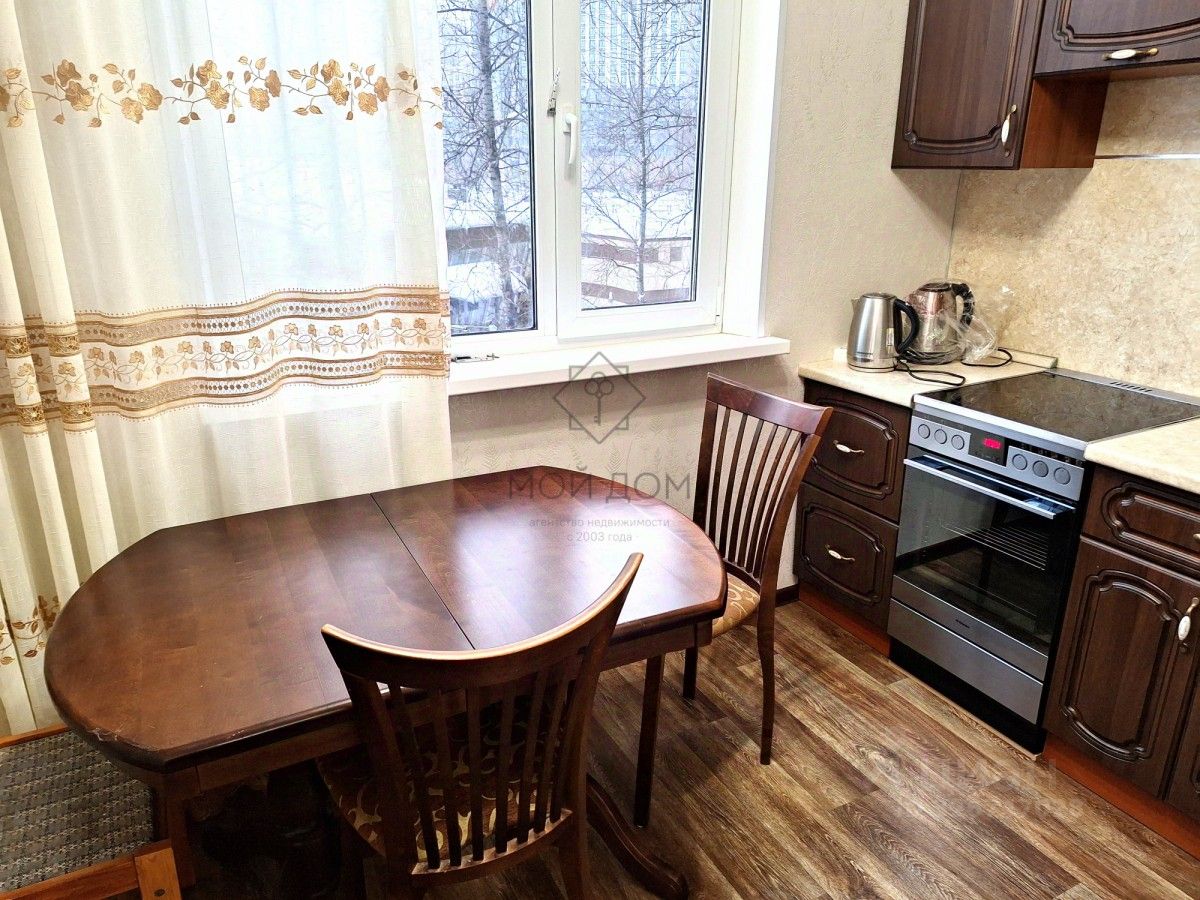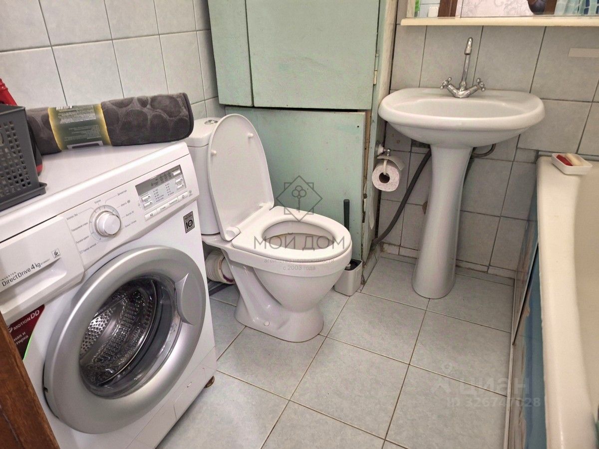 Кухня оснащена современной техникой, включая холодильник, электрическую плиту, микроволновку. Имеется обеденный стол и стулья. Санузел совмещенный, стиральная машина автомат.