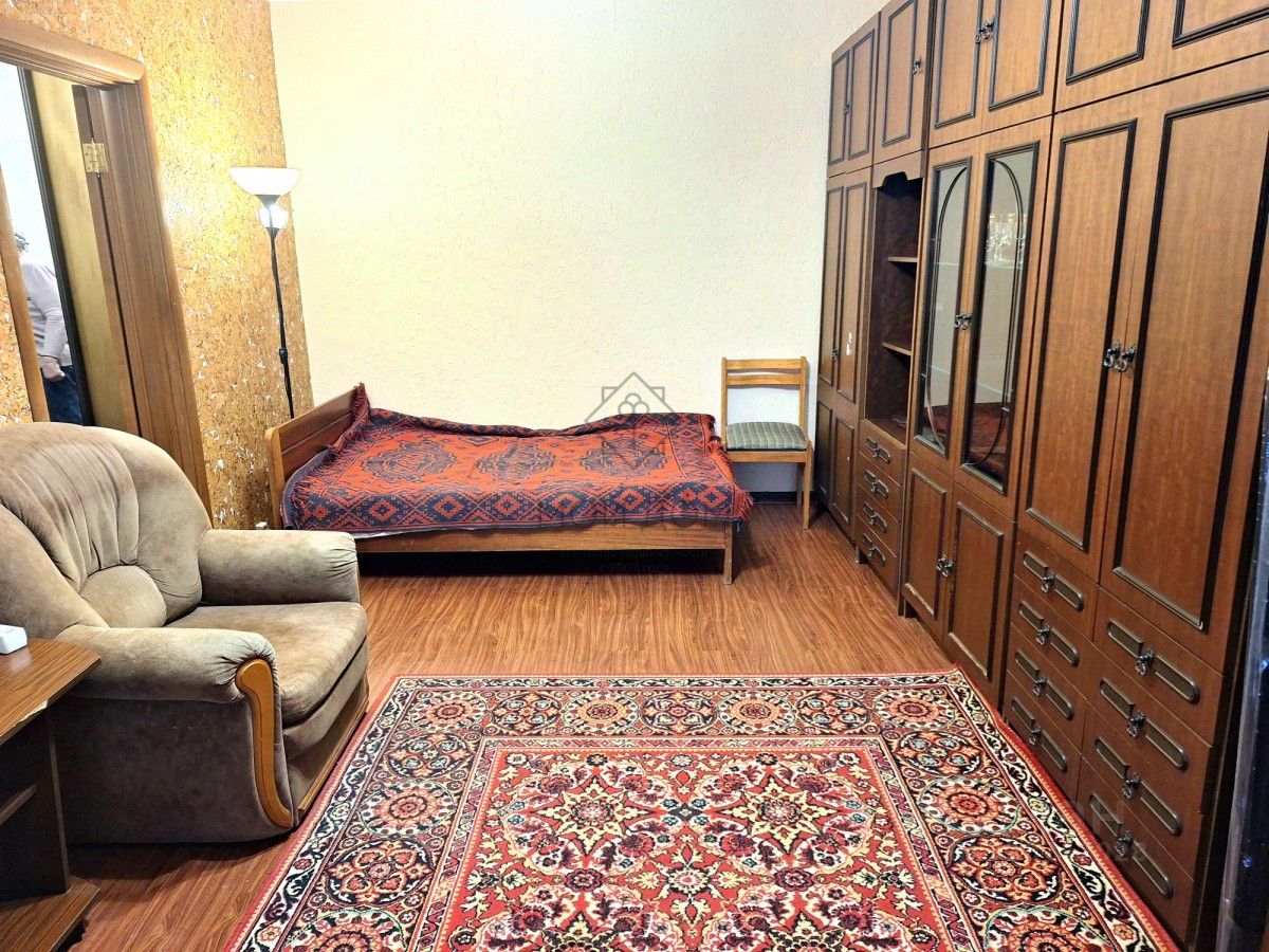 Сдается уютная, чистая современная квартира на длительный срок. Просторная комната - стенка, кровать, 2-ва кресла ТВ. Застекленный балкон. В коридоре - шкаф-купе.