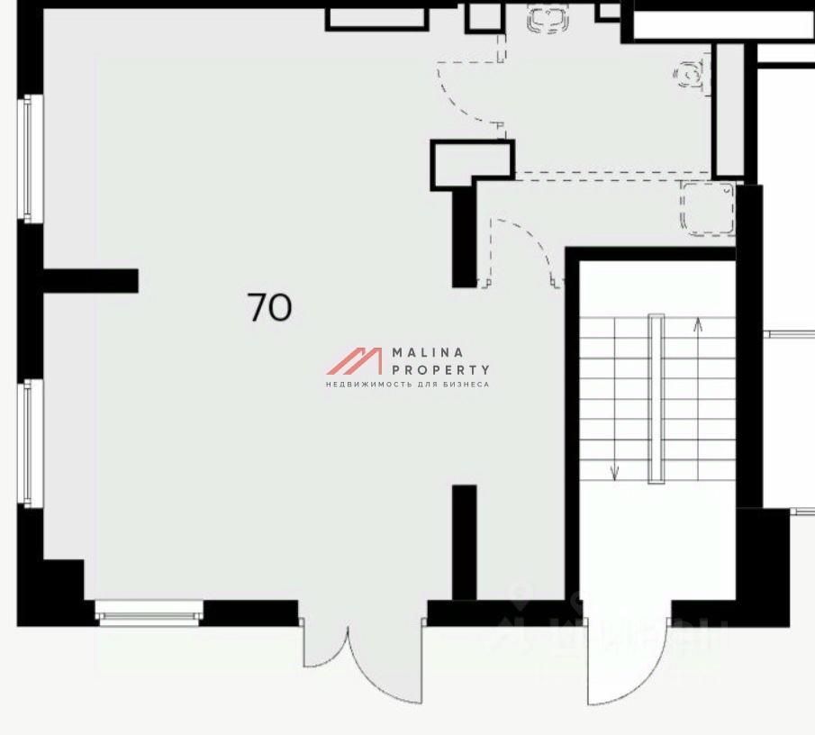 Помещение 70 м2 угловое, располагается на 1 этаже, открытая планировка, отдельный вход, высота потолка 3,5 м, витринные окна по фасаду. Электрическая мощность14 кВт. Мокрая точка. Парковка перед фасадом. Место для размещения рекламы.