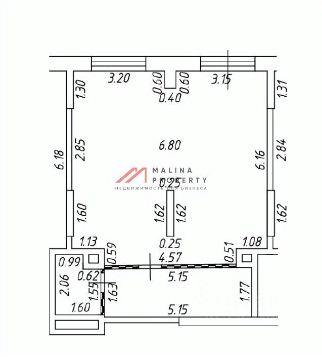 Помещение 55.4 м2, располагается на 1 этаже, открытая планировка, отдельный вход с фасада, высота потолка 4,9 м, витринные окна по фасаду. Электрическая мощность 20 кВт. Место для размещения рекламы. Две мокрые точки.
