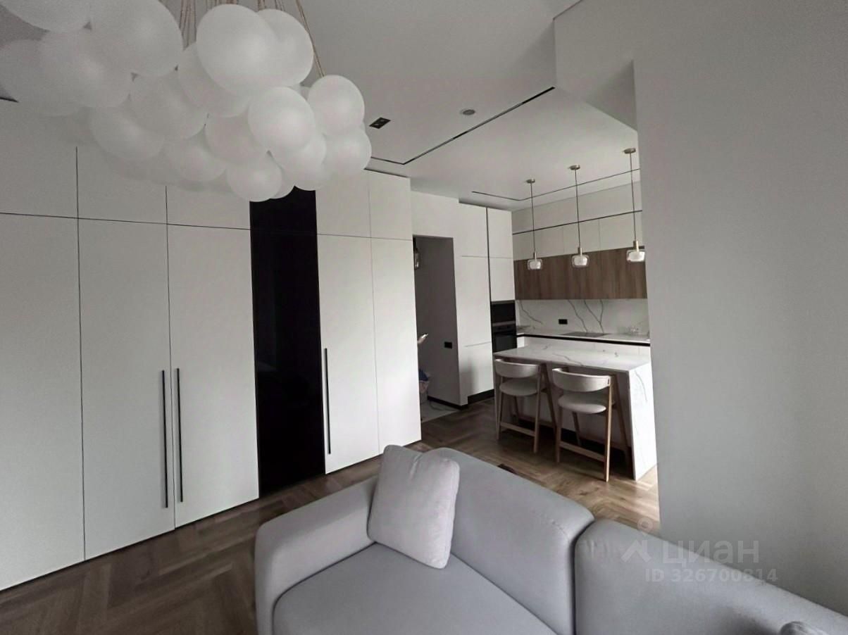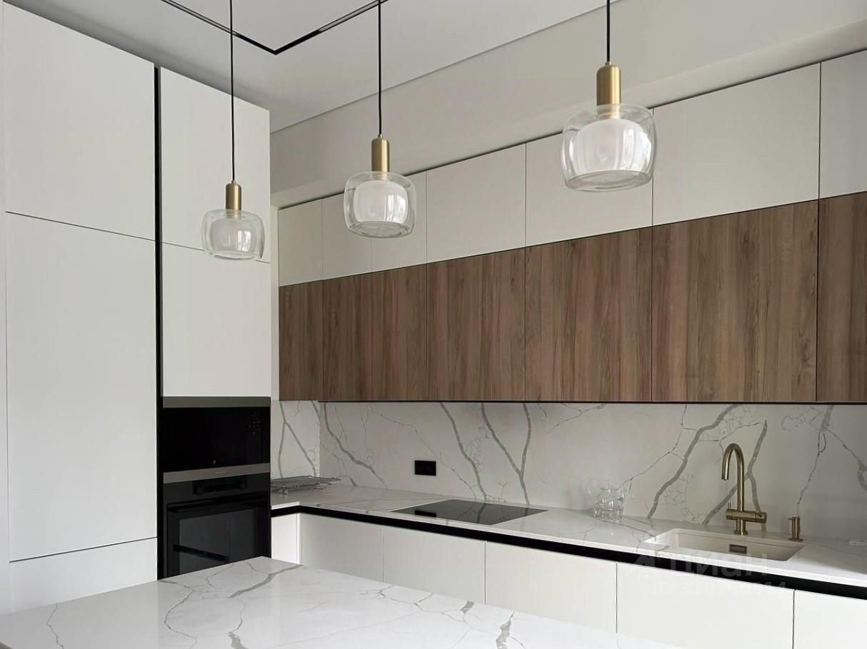 О КВАРТИРЕ Пространство площадью 75 м² с потолками 3,1 м ощущается свободно и объемно. Квартира с продуманной современной отделкой, выполненной в спокойной премиальной стилистике. Кухня-гостиная оснащена мебелью и техникой высокого уровня: встроенные решения Asko и Smeg, столешница и остров из натурального камня, акцентное освещение и мебель в потолок формируют цельную архитектуру интерьера.