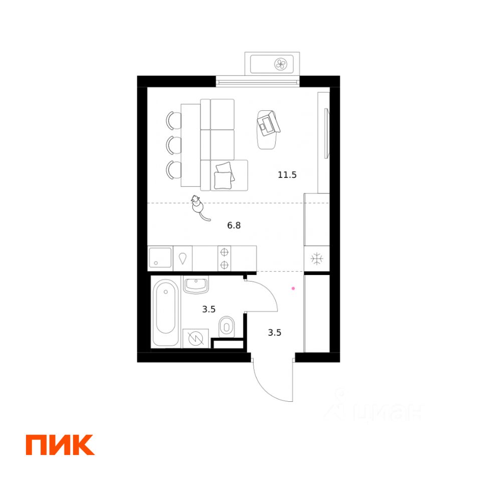 Жилая площадь11,5 м2