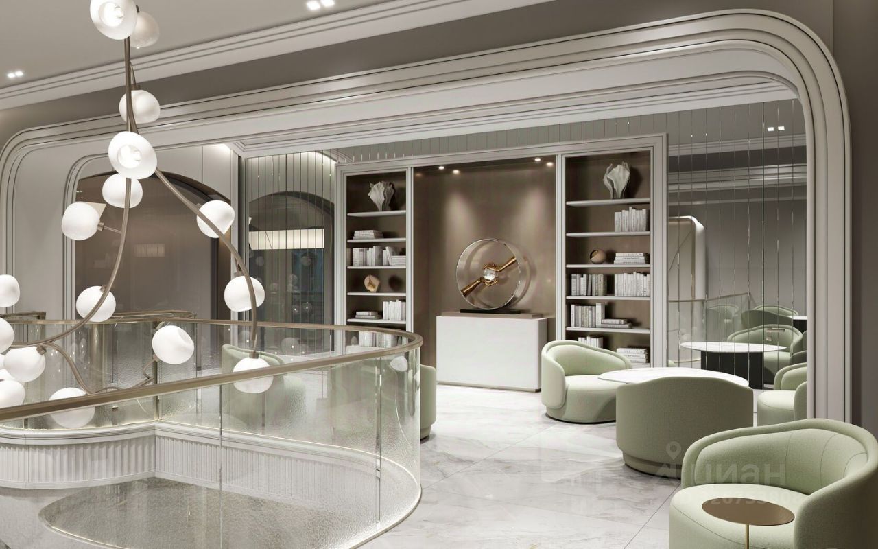 ''Обыденский N1'' - красивый, изысканный дом в стиле неоклассики с просторным двухуровневым, светлым, шикарным лобби с потолками 6,5 м и дорогой отделкой.