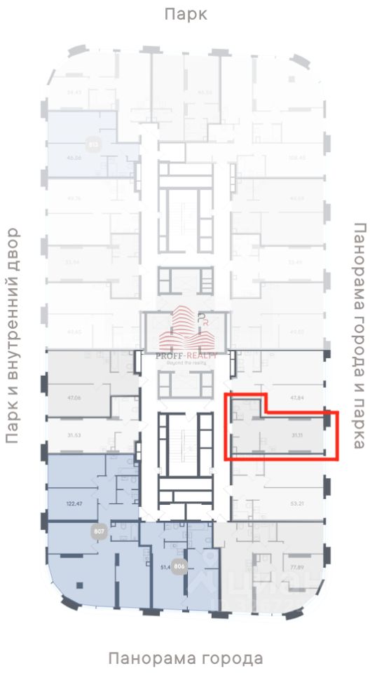 Высота потолков — 3,2 метра. Квартира с большими окнами в пол, выходящими на юго-восточную сторону, что делает квартиру более светлой и октрывает вид на город и парк.