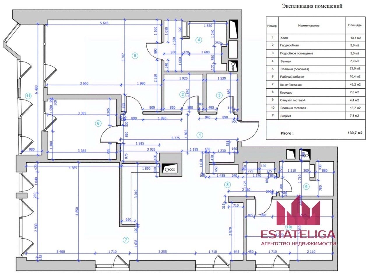 ПЛАНИРОВКА: - Просторная прихожая - Кухня - гостиная 35м2 - Четыре изолированные спальни - Два санузла - Постировная - Два просторных балкона с видом на набережную - Гардеробная