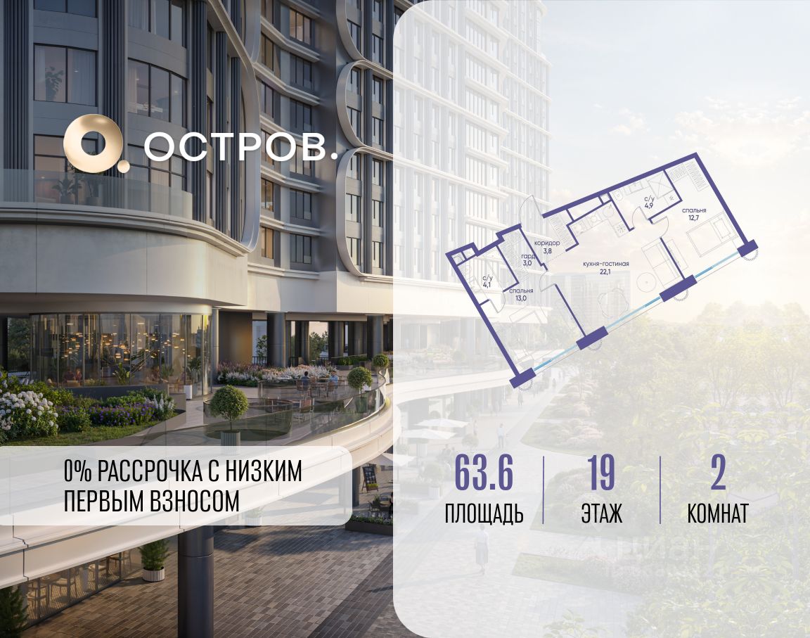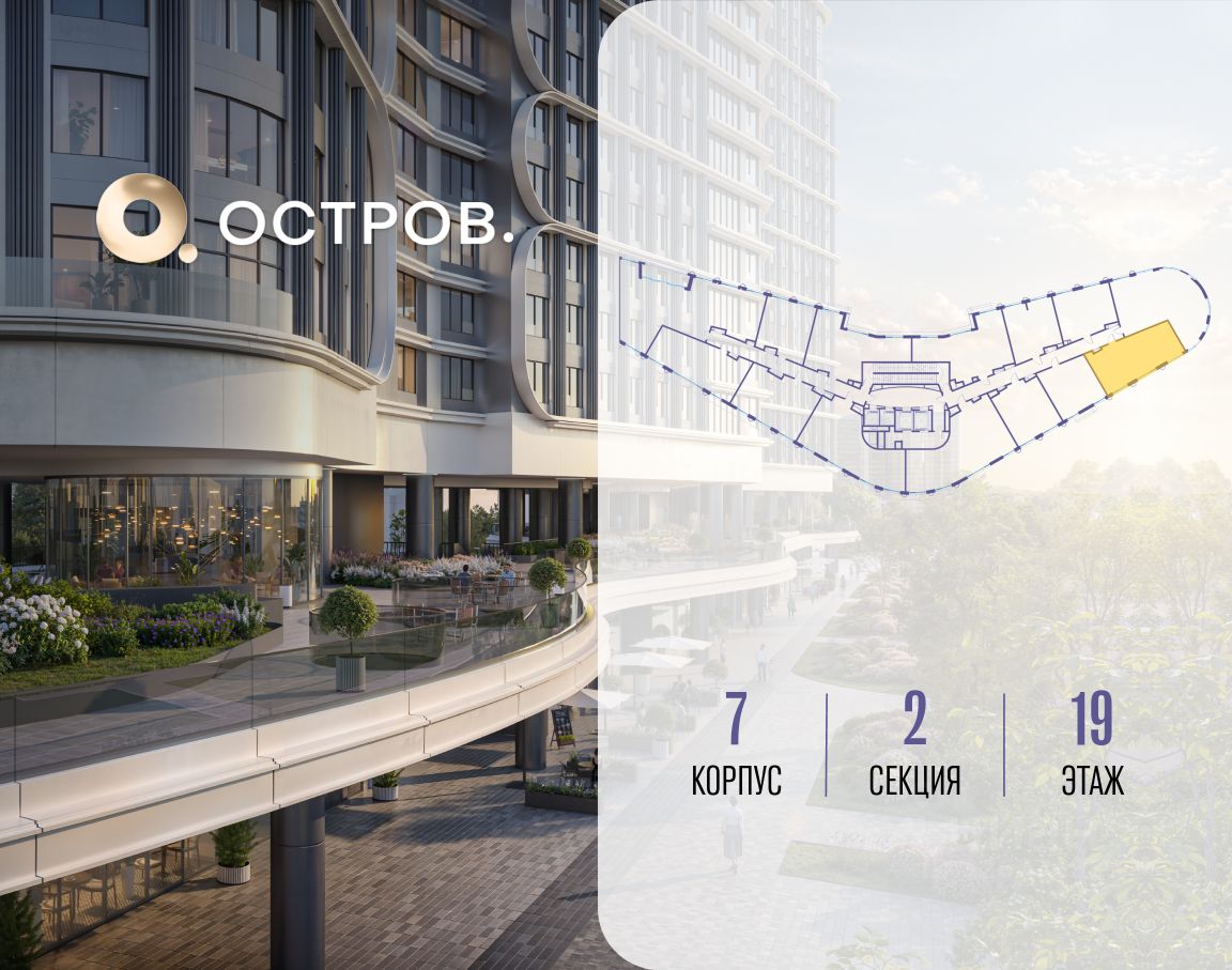 Купите квартиру в доме у прибрежного парка, в квартале ОСТРОВ.7. Это семь корпусов премиум- и бизнес-класса в одном из лучших мест ОСТРОВА - между бульваром и парком, поблизости от реки. Стильные корпуса имеют узнаваемый вид благодаря бионической пластике фасадов, приподнятых над землей. Для жителей предусмотрены детский клуб, фитнес-рум, коворкинг, переговорные, лаунжи. На крышах устроены видовые общественные пространства с зонами для отдыха и спорта. Двор расположен на двух уровнях: нижний ландшафтный парк и верхняя городская терраса.