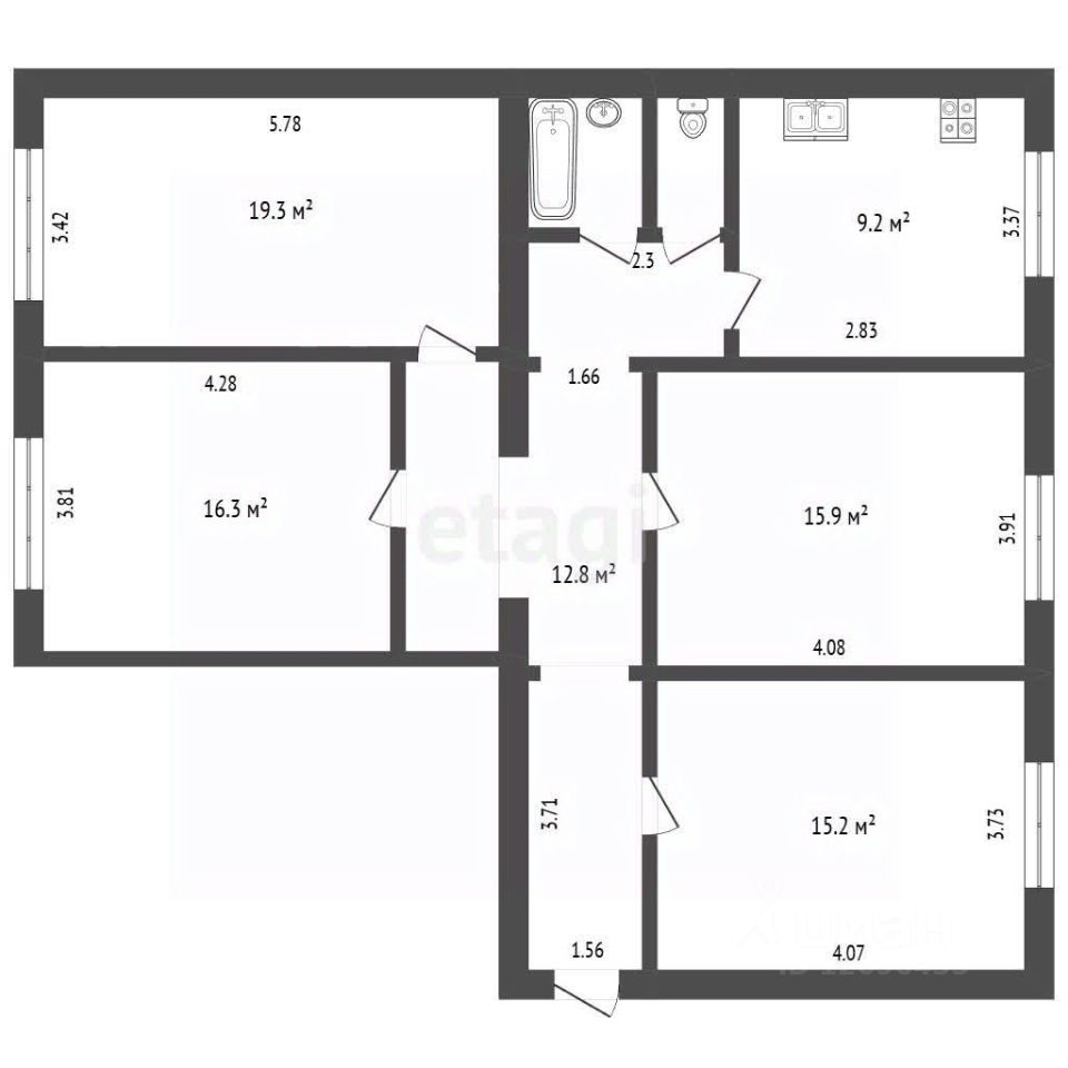 Основные характеристики: общая площадь: 102,7 м2, жилая площадь комнат: 16 м2, 16 м2, 16 м2 и 19 м2 (с отдельными лицевыми счетами), высота потолков: 3 м — ощущение простора и возможности для дизайнерских решений, капитальный ремонт дома выполнен в 2024 году — отличное техническое состояние здания.
