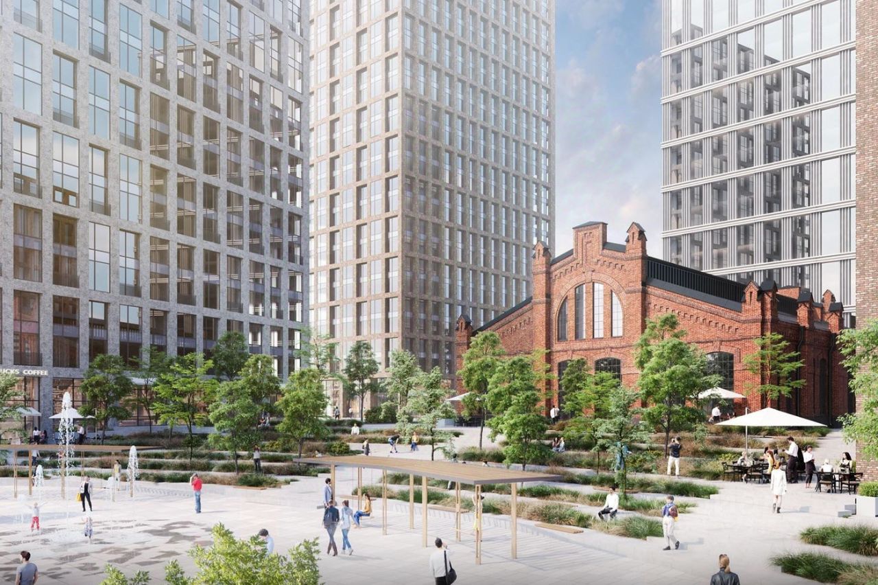 На 4 гектарах двора расположатся 7 игровых зон для разных возрастов с ручьём, арт-галерея под открытым небом и большой прогулочный бульвар. Детсад от европейской гимназии, SPA-комплекс с бассейном и термами, гастро-центр (премиальные рестораны, бары, магазины кулинарных книг на всех языках). Благоустройство от британского бюро Gillespies.