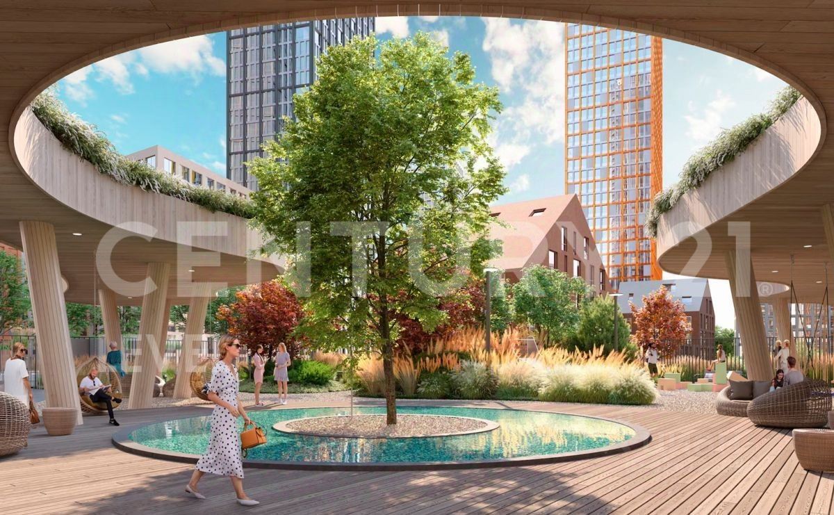 Комплекс имеет собственную инфраструктуру: спортивные площадки, студии, SPA и медицинские учреждения, кафе и магазины. Предусмотрен выход на благоустроенную набережную Москва-реки.