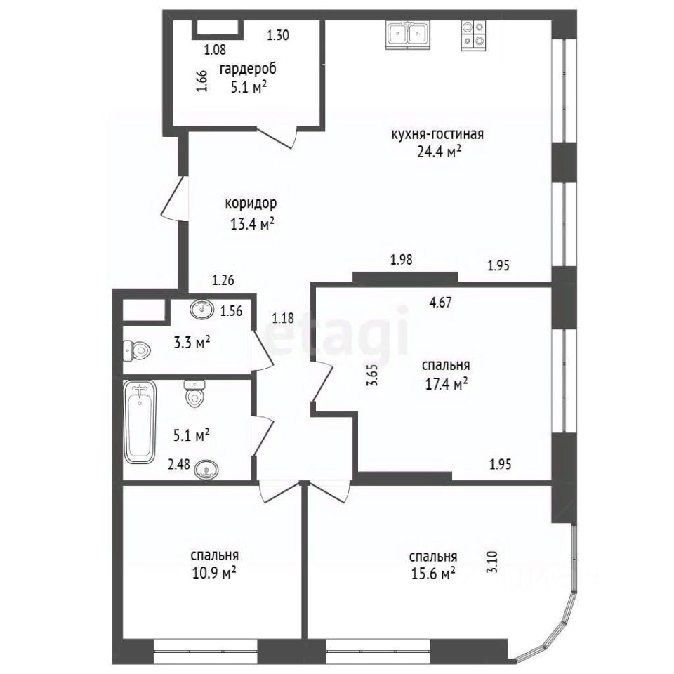 Идеальный семейный формат. 3 раздельные комнаты, просторная кухня-гостиная, 2 санузла и гардеробная. Вид в красивый благоустроенный двор.
