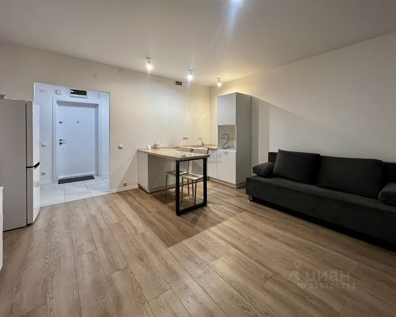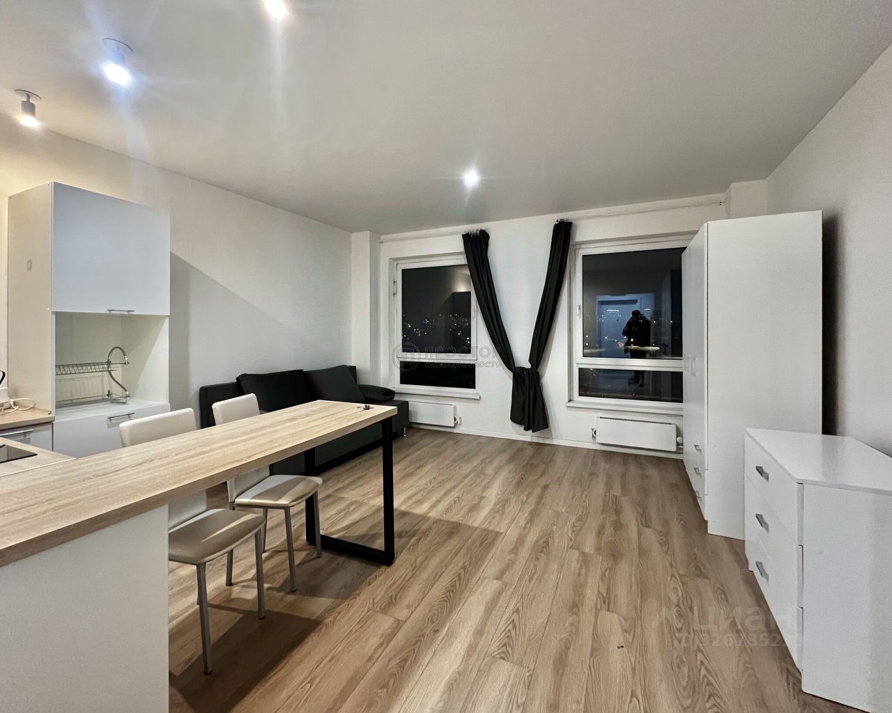 Просторная светлая студия, комната правильной формы 20м, широкая, не ''вагоном'', коридор 4.6м с нишей под гардеробный шкаф, органичный сан.узел 2.7м, в комнате два полноценных увеличенных окна, из которых открывается красивый свободный вид, много неба и никаких домов напротив нет и не будет в связи с состоявшейся инфраструктурой, мебель и техника входит в стоимость, квартира не угловая и не граничит с лифтовой шахтой, расположена на северо-западной стороне дома, что исключает летние невыносимые перегревы. Низкие коммунальные платежи. Дом сдан несколько лет назад, поэтому ремонтные работы давно утихли.