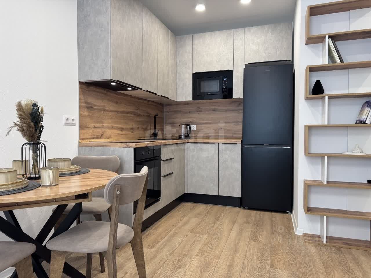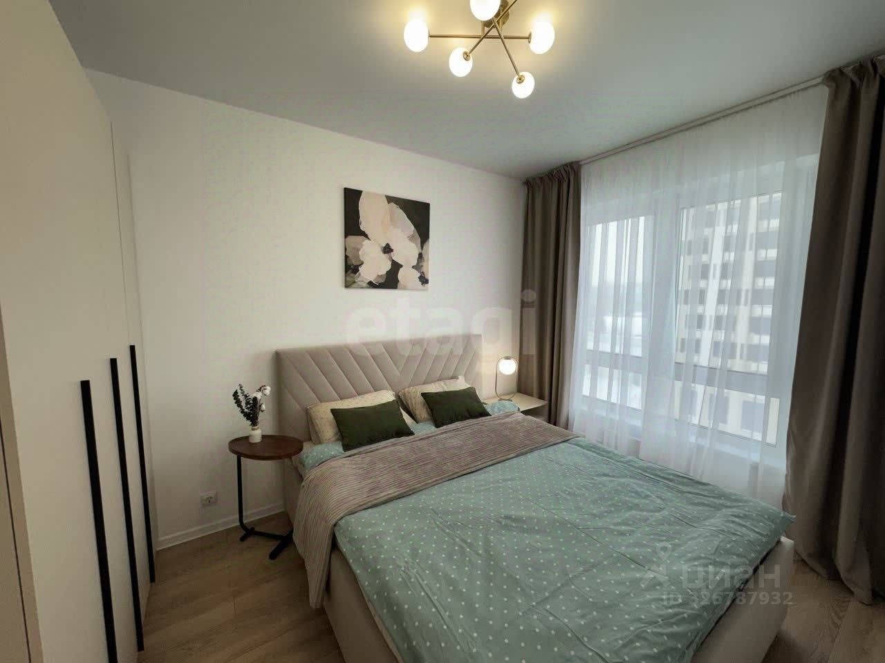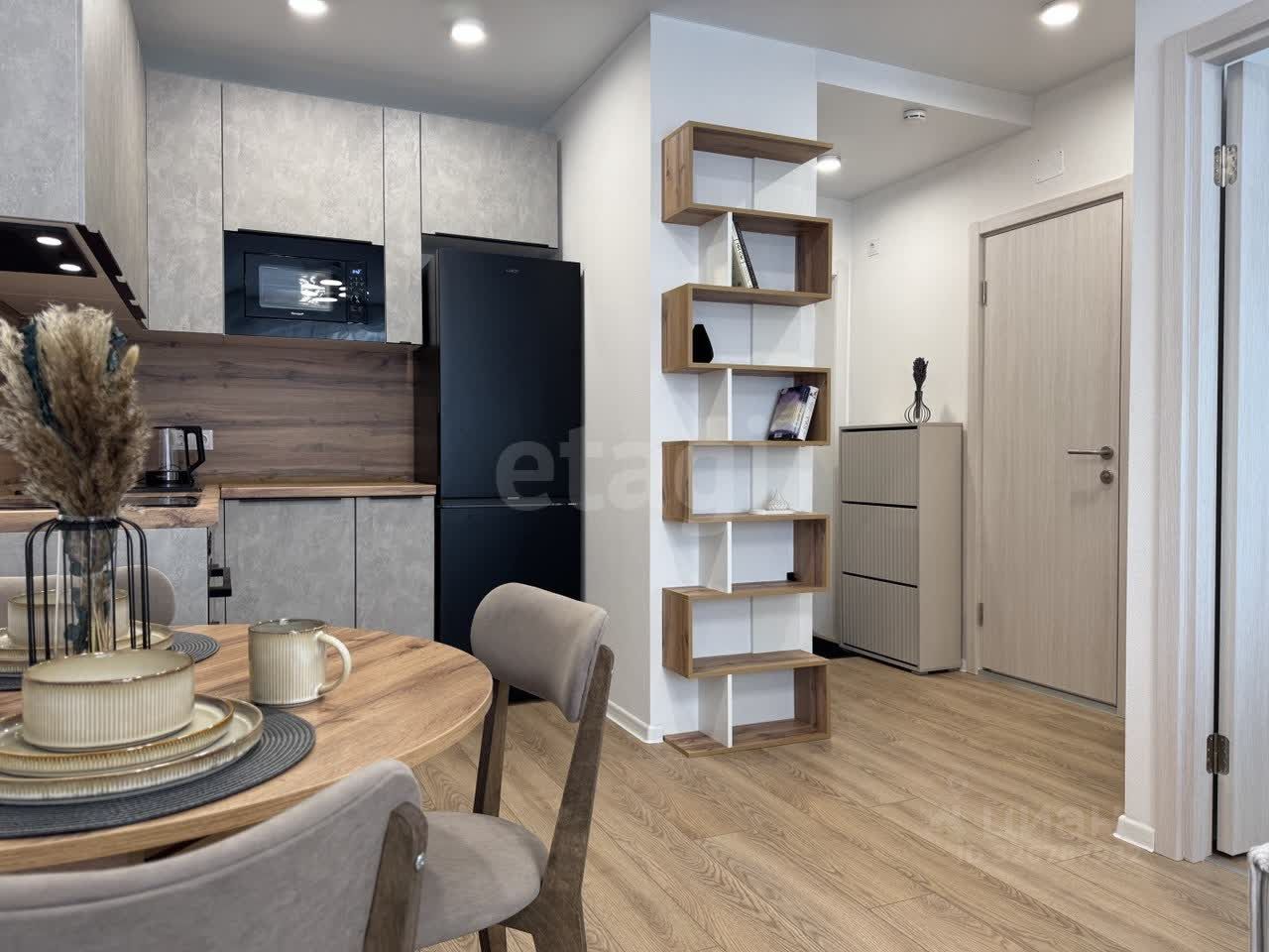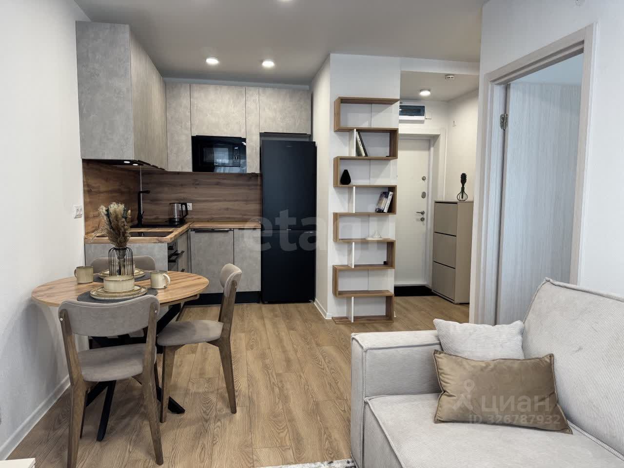 Планировка и мебель: Квартира разделена на полноценную спальню и светлую кухню-гостиную. — Спальня: Установлена двуспальная кровать с орто-основанием и подъемным механизмом, матрас ''Аскона''. Под матрасом — глубокий короб для хранения чемоданов, зимних одеял или подушек. Рядом — вместительный распашной шкаф. Свет lamplandia, шторы blackout. — Кухня-гостиная: Модульный раздвижной диван с бельевым ящиком (постельное белье и пледы будут всегда под рукой, но на виду). Обеденная зона и полноценное место для отдыха, раскладывающийся стол. Телевизор 50' smart TV. — Прихожая: Большой распашной шкаф для верхней одежды и обуви и обувница.