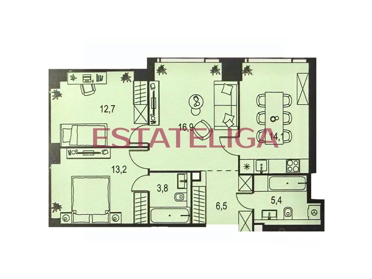 Id 60691. Продается трехкомнатная квартира 72 м2 свободной планировки в ЖК Бизнес класса ''Level Мичуринский''!