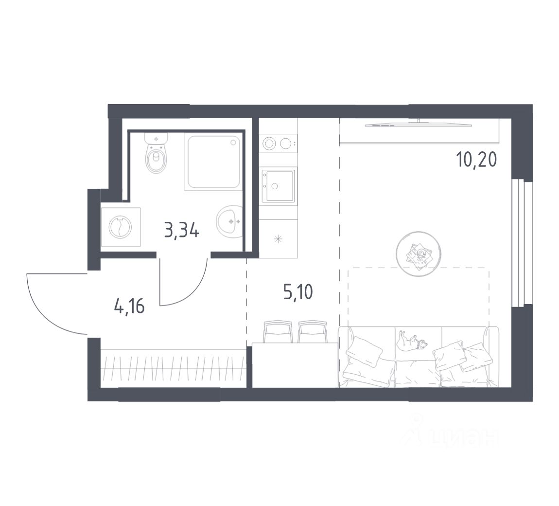 Общая площадь22,8 м2