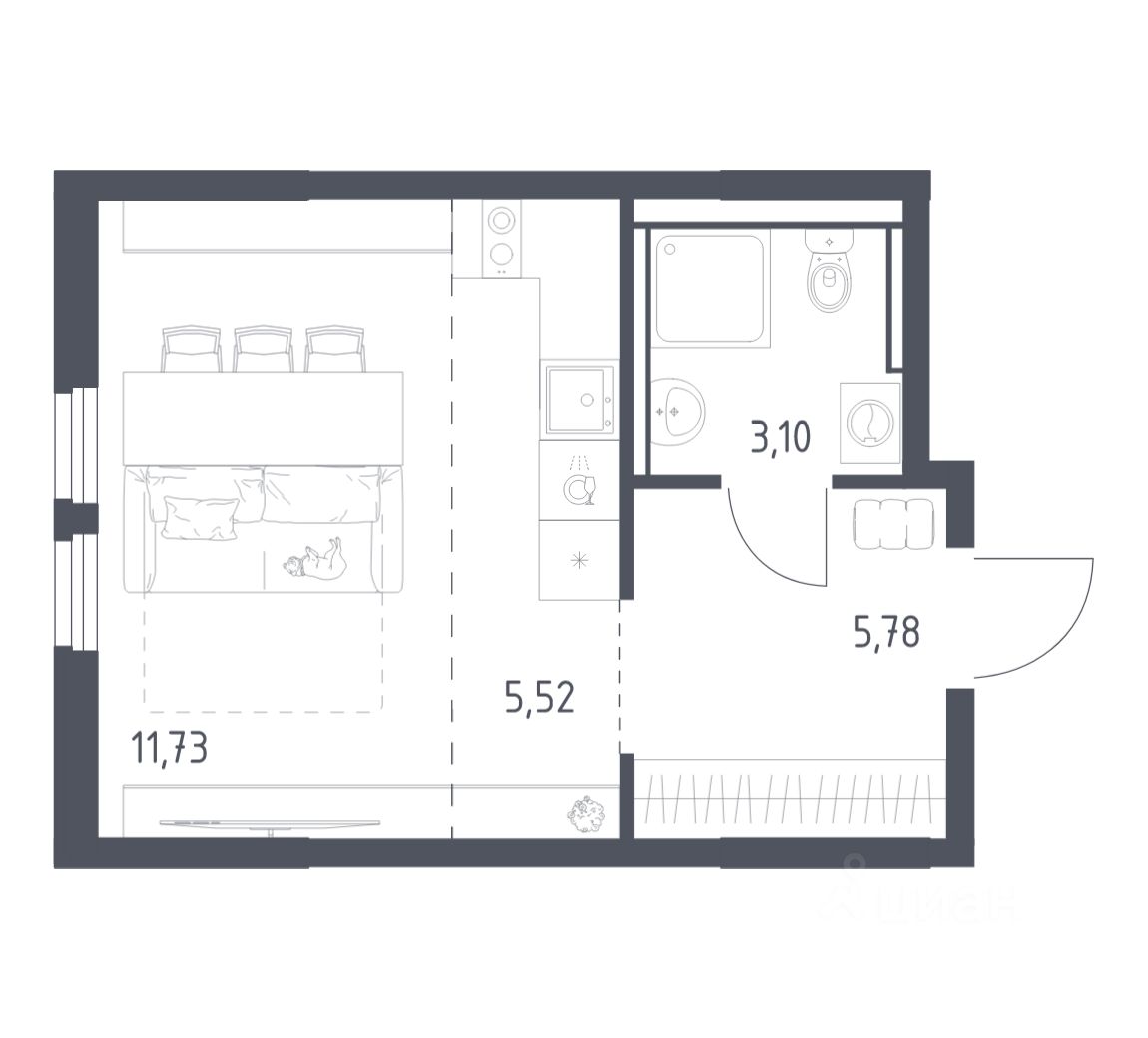 Жилая площадь11,7 м2