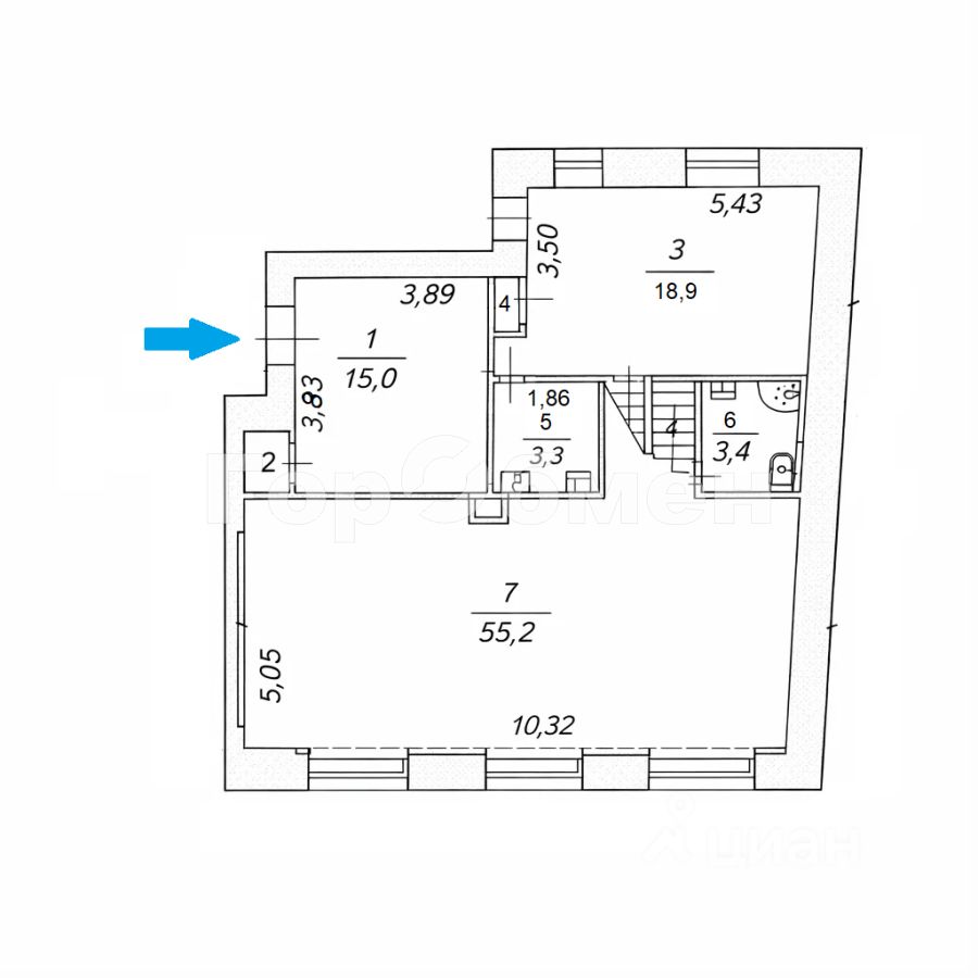 Первый этаж отдельно стоящего 5-и этажного особняка в центре Москвы.