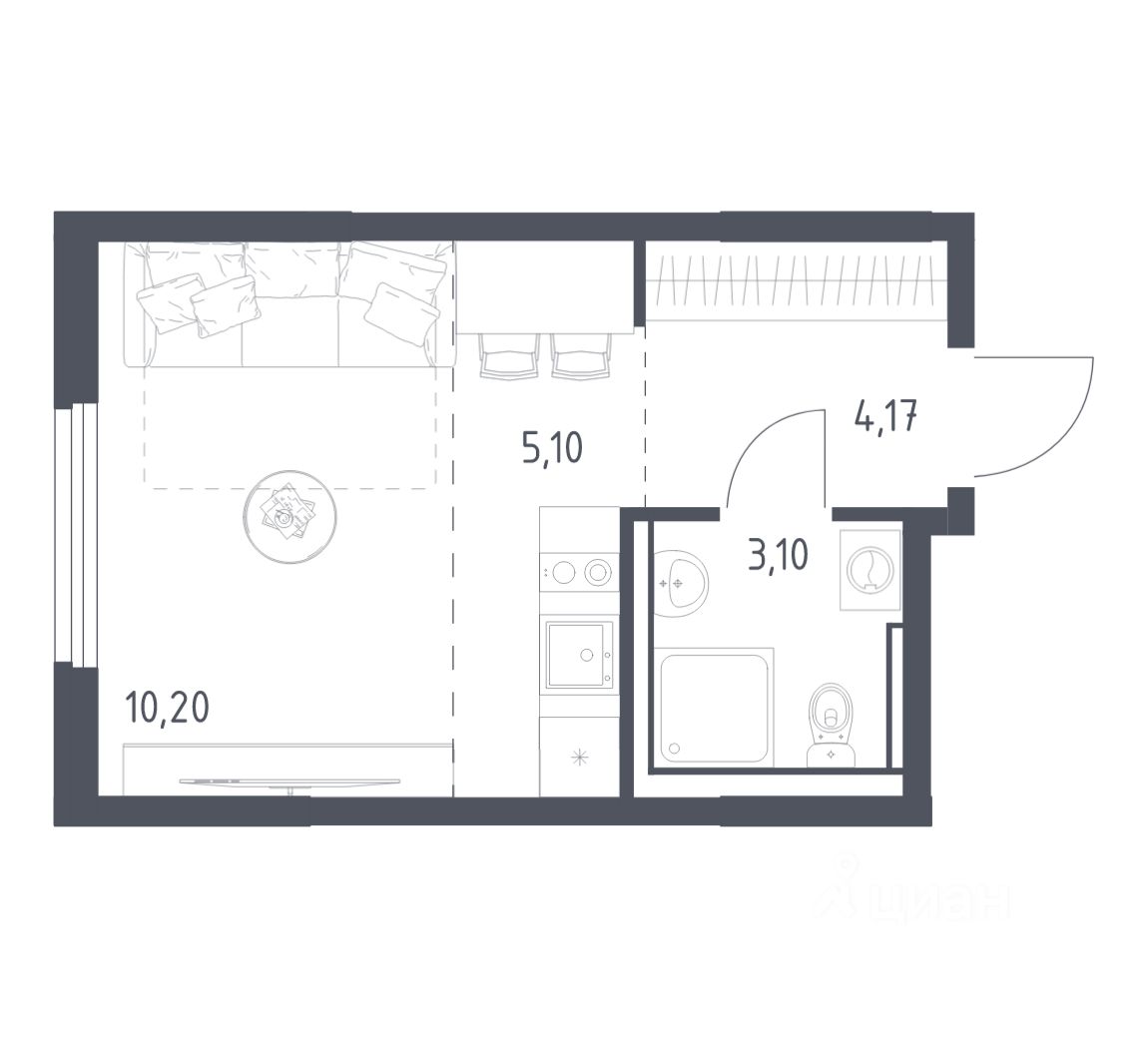 Жилая площадь10,2 м2