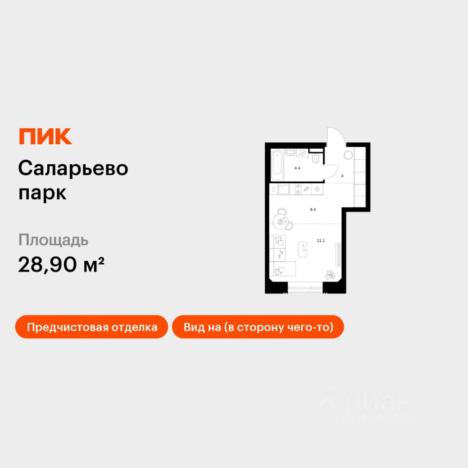 Продаётся квартира-студия площадью 28,9 кв.м на 14 этаже 23 этажного дома (Корпус 69.1, Секция 1) проекта ПИК Саларьево парк. Светлый просторный подъезд на уровне земли, функциональная планировка, большие окна, предчистовая отделка.