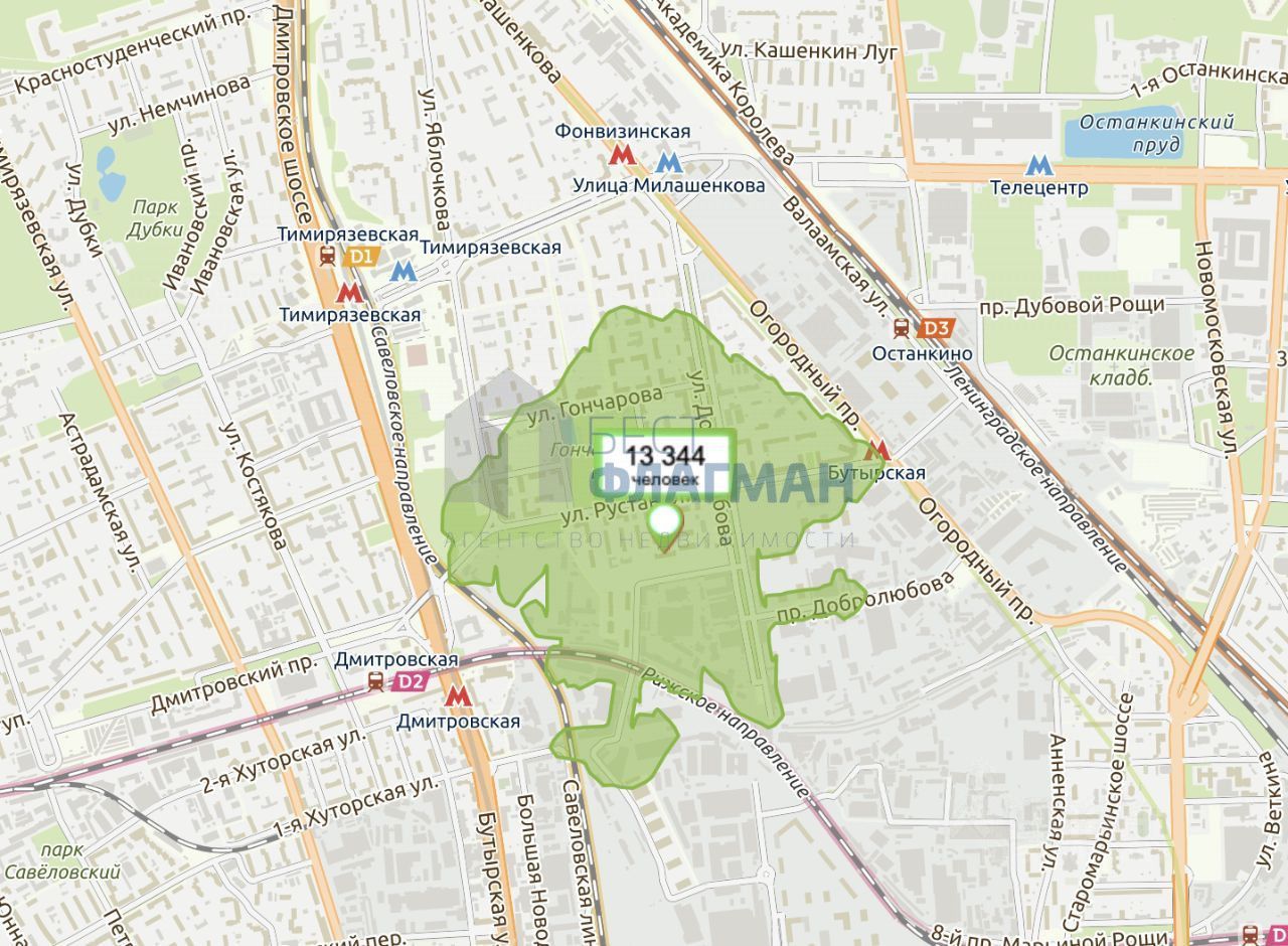 Метро: Бутырская (10 мин.), Дмитровская (12 мин.), Фонвизинская (17 мин.), Останкино (18 мин.), Тимирязевская (20 мин.)