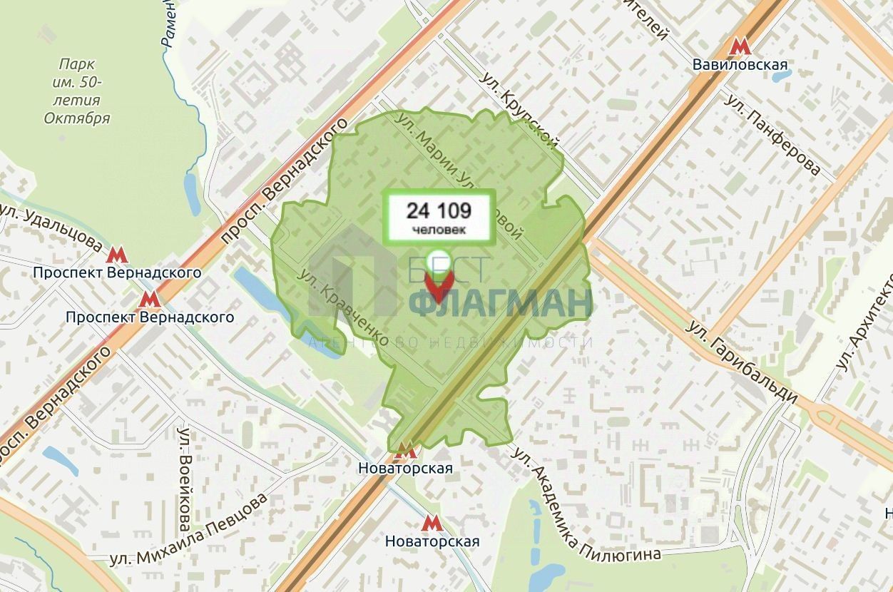 ЛОКАЦИЯ Метро Новаторская в 5 минутах ходьбы В радиусе 10 минут пешком проживает 24109 человек