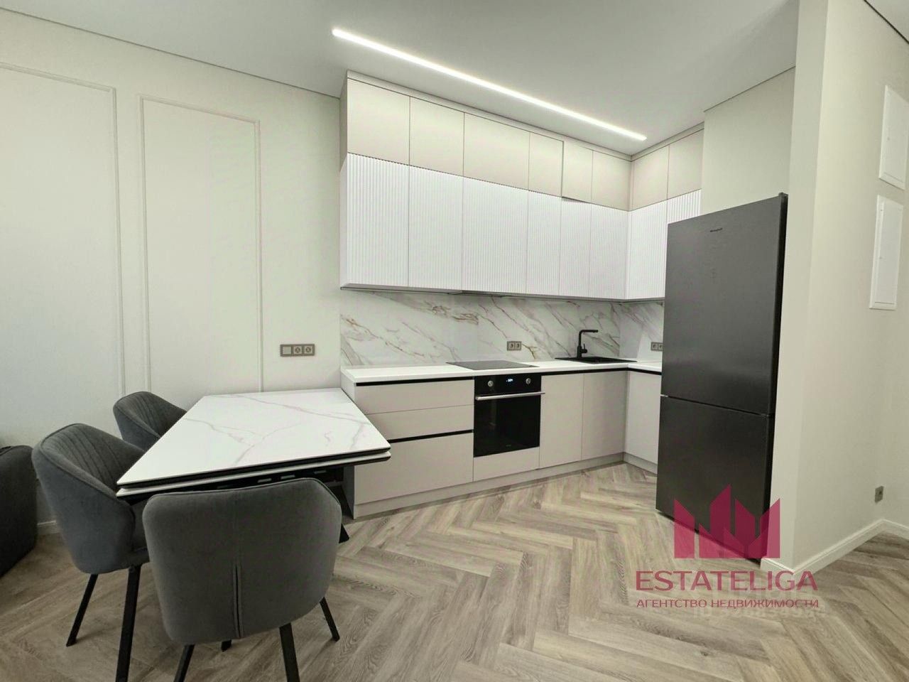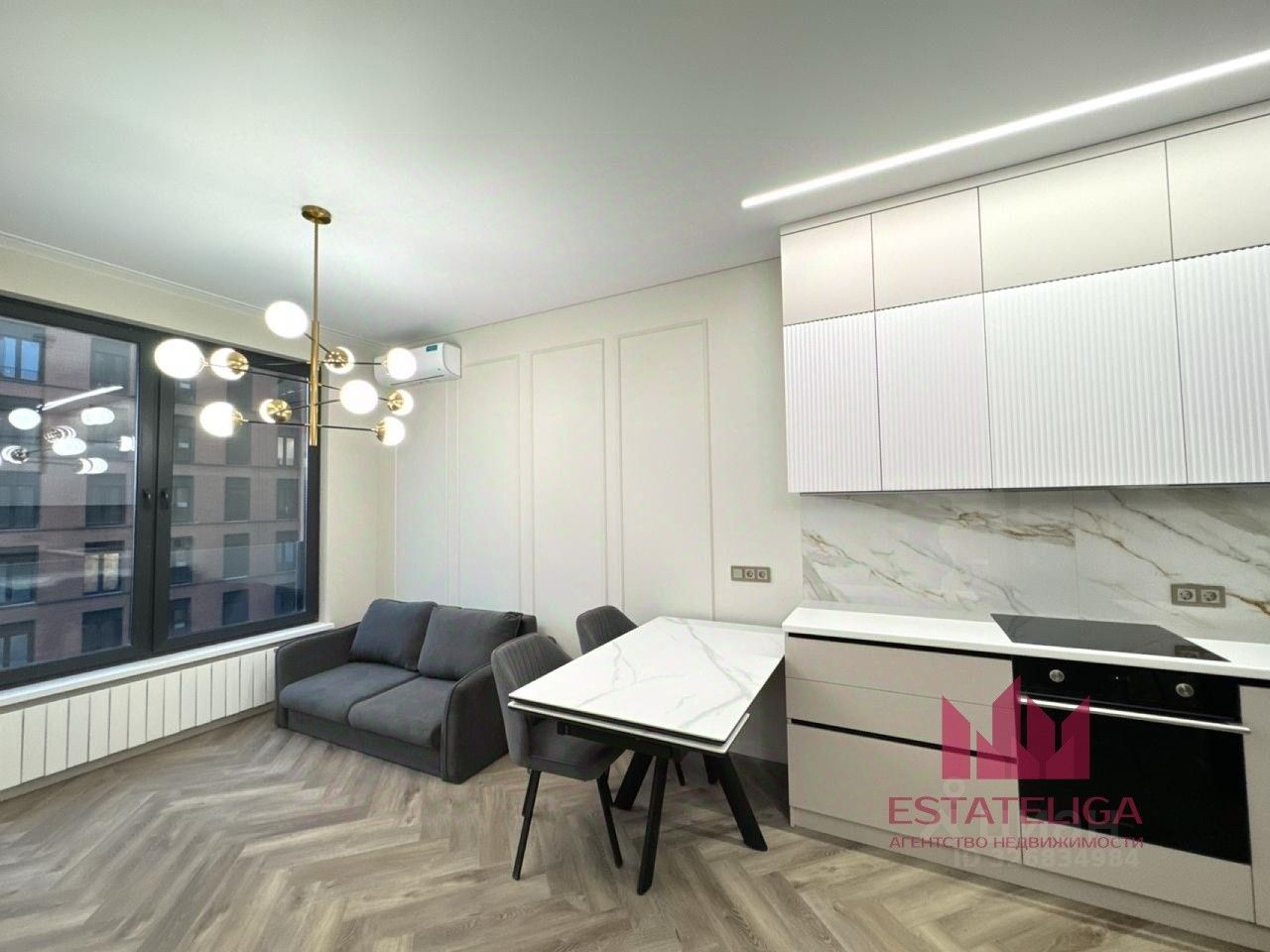 В квартире имеется вся необходимая мебель и техника для комфортного проживания, включая посудомоечную машину. Вся мебель и встроенная техника подобраны с душой и вкусом. Ремонт выполнен из высококачественных материалов, премиальная техника.
