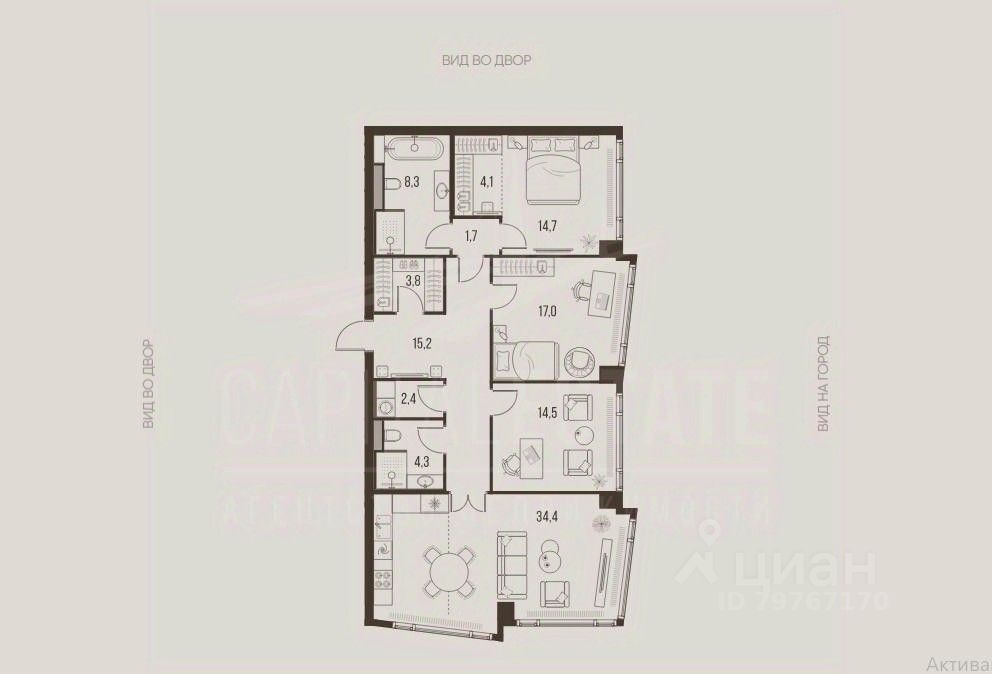 4-к квартира квартира в премиальном комплексе HIGH LIFE на 6-м этаже в 24 этажном здании.