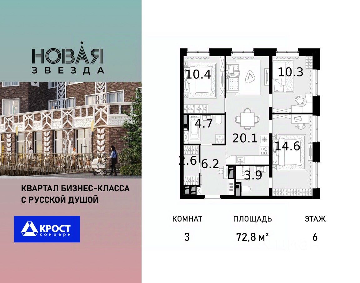 продам 3-к, Новая Звезда ЖК, 622 640 800 ₽