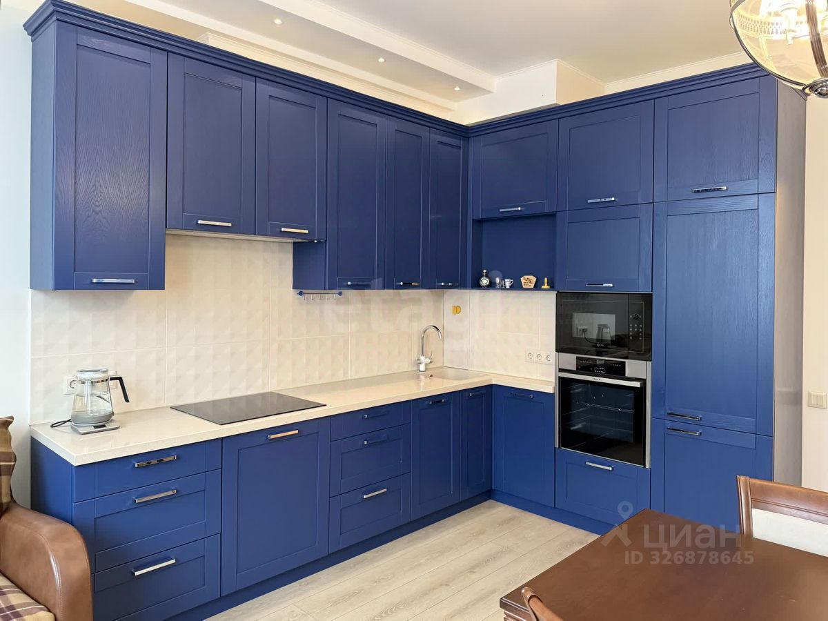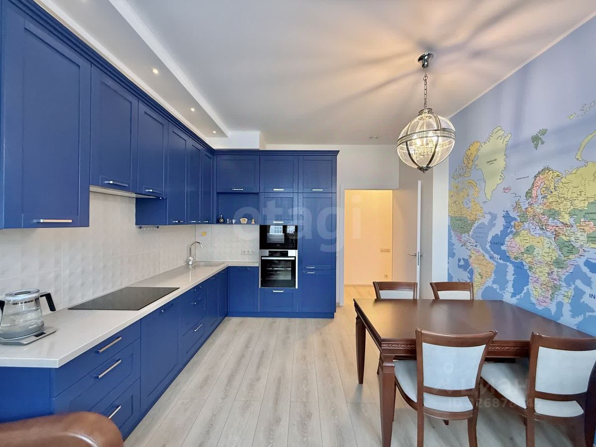 Просторная кухня наполнена светом и воздухом. Мягкие, пастельные тона стен служат идеальным фоном для дизайнерской мебели и акцентных деталей. Кухонный гарнитур от итальянского производителя, оснащенный встроенной техникой евро-класса, станет местом силы для ценителей кулинарии. Спальня-убежище, где царит атмосфера уюта и спокойствия. Мягкое текстильное освещение и качественный пол создают идеальные условия для отдыха. Авторские светильники, эксклюзивная отделка и продуманная система хранения до мелочей — каждая деталь работает на ваш комфорт.