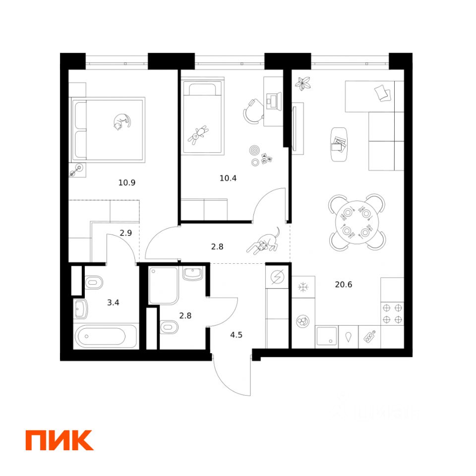 Продаётся 2-комн. квартира площадью 58,3 кв.м на 42 этаже 43 этажного дома (Корпус 1.1, Секция 1) проекта ПИК 2-й Иртышский. Светлый просторный подъезд на уровне земли, функциональная планировка, большие окна, c отделкой.