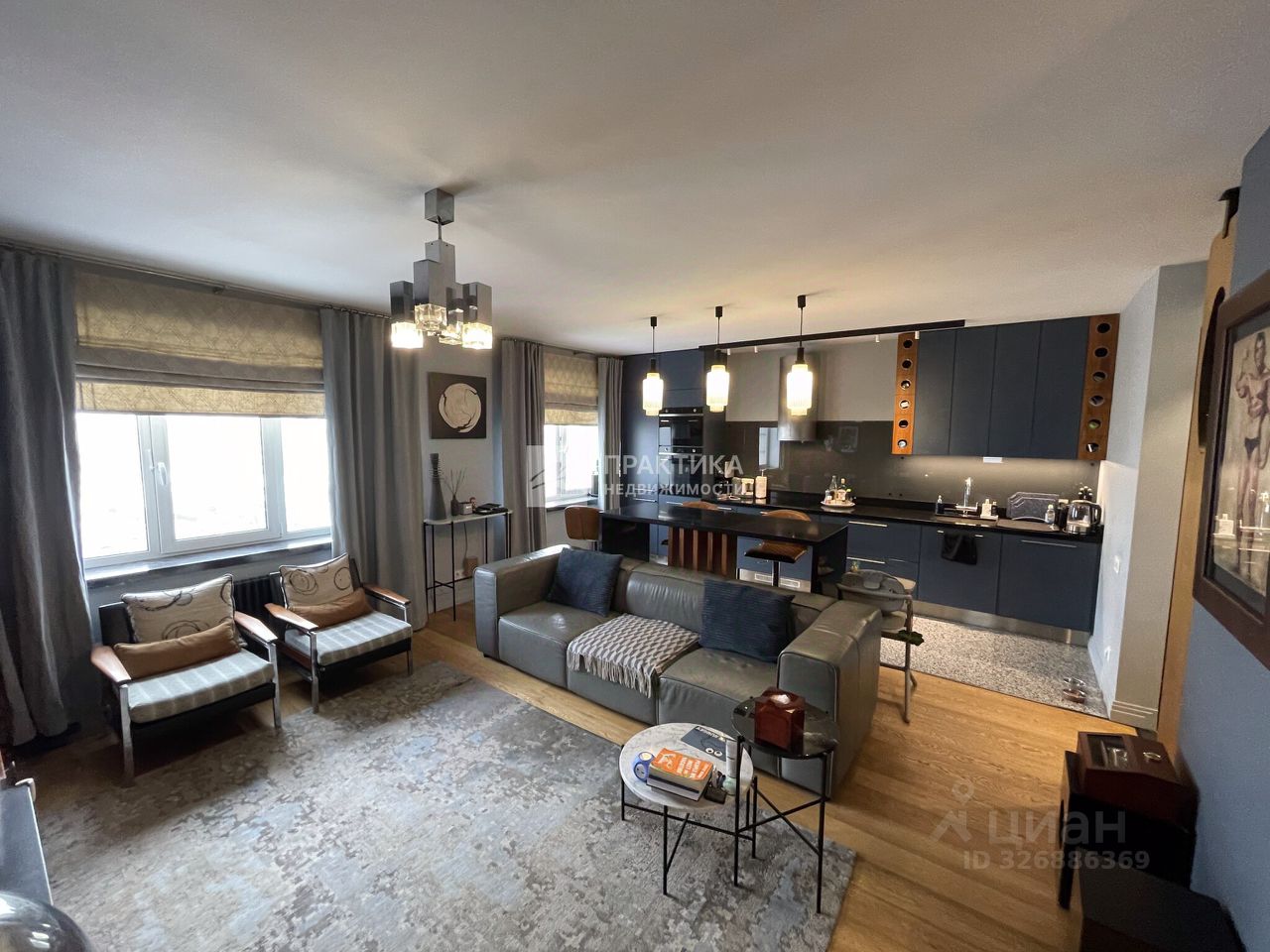 Квартира грамотно разделена на две функциональные зоны: • Кухня-гостиная — просторная, светлая, с панорамными окнами и уникальной атмосферой. • Личное пространство — мастер-спальня, объединённая с гардеробной и рабочим кабинетом.