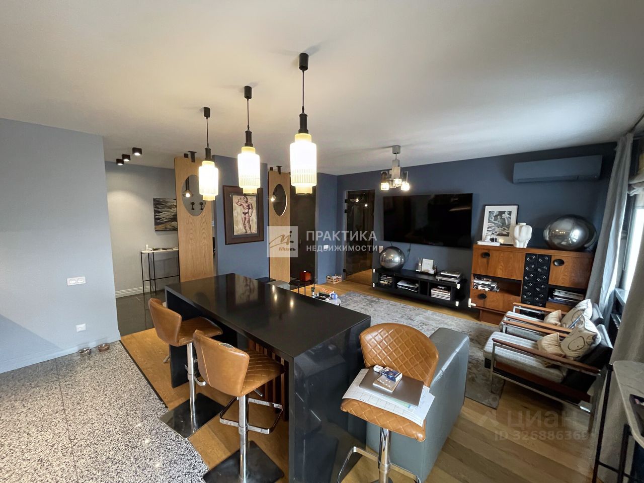 Представляем стильную квартиру, созданную по авторскому проекту в одном из самых престижных жилых комплексов Москвы. Интерьер продуман до мелочей: пространство трансформировано из трёхкомнатной планировки в современное открытое решение, идеально подходящее для комфортной жизни и работы дома.