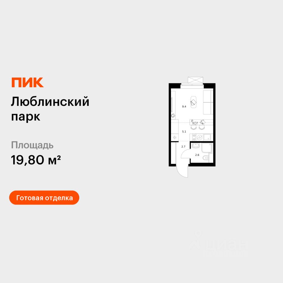 Продаётся квартира-студия площадью 19,8 кв.м на 25 этаже 25 этажного дома (Корпус 18-20, Секция 1) проекта ПИК Люблинский парк. Светлый просторный подъезд на уровне земли, функциональная планировка, большие окна, c отделкой.