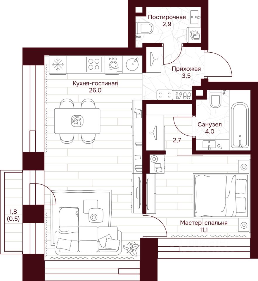 Продается 1-к квартира общей площадью 50.70 кв.м на 4 этаже в жилом квартале премиум-класса ''Дом 7 Даниловский''. Срок сдачи: 2 квартал 2027 года.