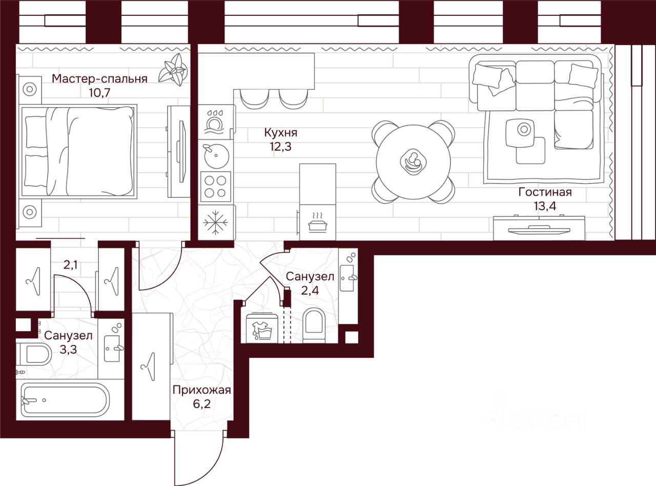 Продается 1-к квартира общей площадью 50.40 кв.м на 7 этаже в жилом квартале премиум-класса ''Дом 7 Даниловский''. Срок сдачи: 2 квартал 2027 года.