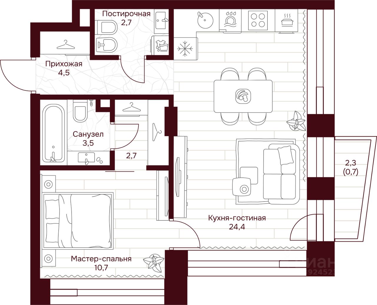 Продается 1-к квартира общей площадью 49.20 кв.м на 2 этаже в жилом квартале премиум-класса ''Дом 7 Даниловский''. Срок сдачи: 2 квартал 2027 года.