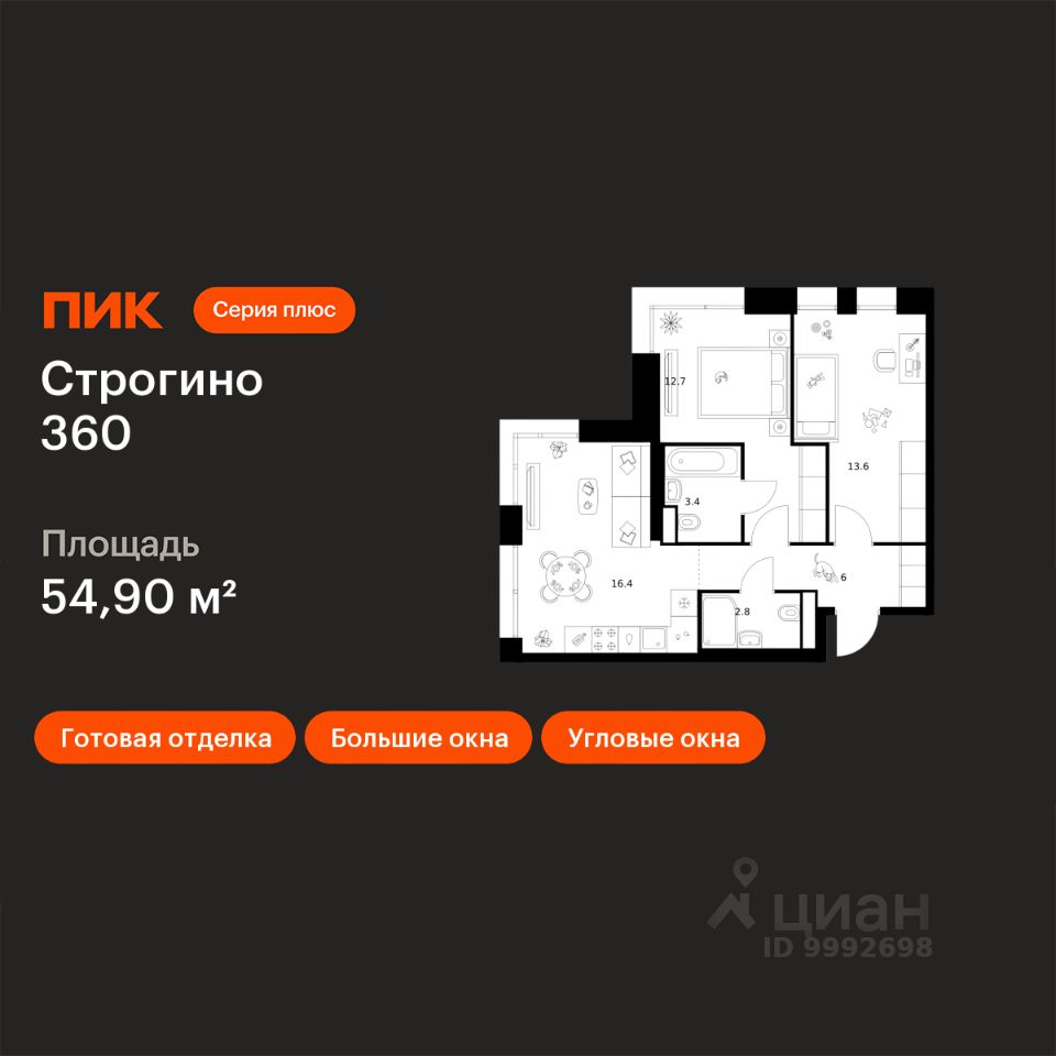 Новостройка! Продается 2-комн. кв-ра площадью 54,9 кв.м, (Корпус 1.1.1, Секция 1) 2 этаж 30-этажного дома в Строгино 360 от ПИК. Проект, где каждый день будет наполнен гармонией и новыми возможностями, где можно найти идеальный баланс между энергией большого города и спокойствием природного окружения. Это настоящая экосистема в окружении четырех парков и набережной Москвы-реки, где современная архитектура, умные технологии и продуманная среда создают новое качество жизни. Здесь дом — не точка на карте, а пространство состояния: покоя, сосредоточенности, внутренней свободы.Ты всё ещё в городе. Но ты уже в стороне от его суеты.