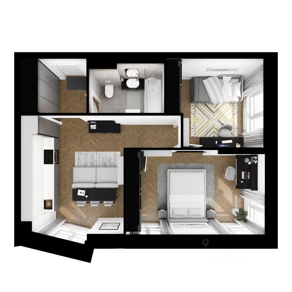 Квартиры продаются с предчистовой отделкой. Это значит, что к моменту получения ключей в доме уже закончатся самые грязные и шумные работы, а вам будет легче реализовать дизайнерские идеи.