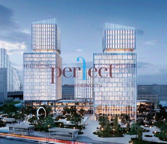 Современный бизнес-центр класса А с благоустроенной озелененной площадью, связывающей офисные башни с метро.