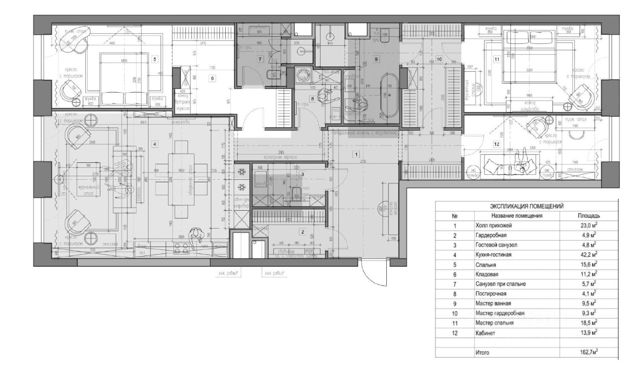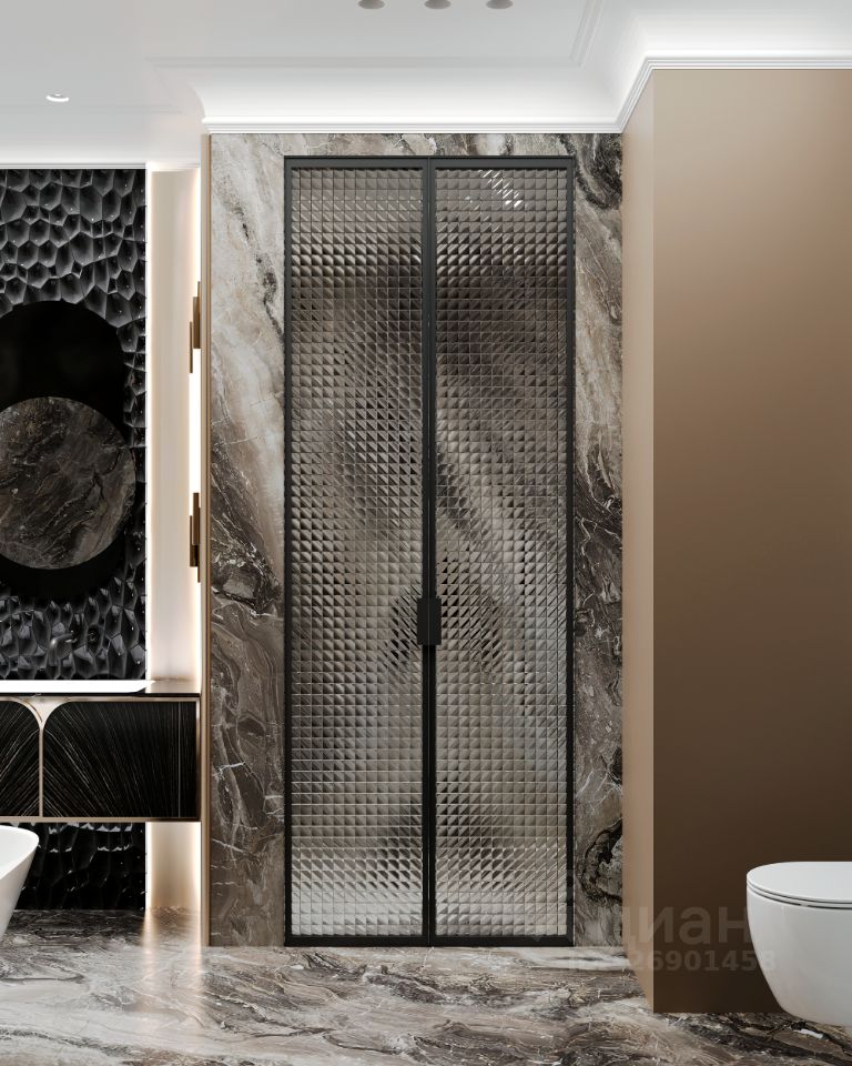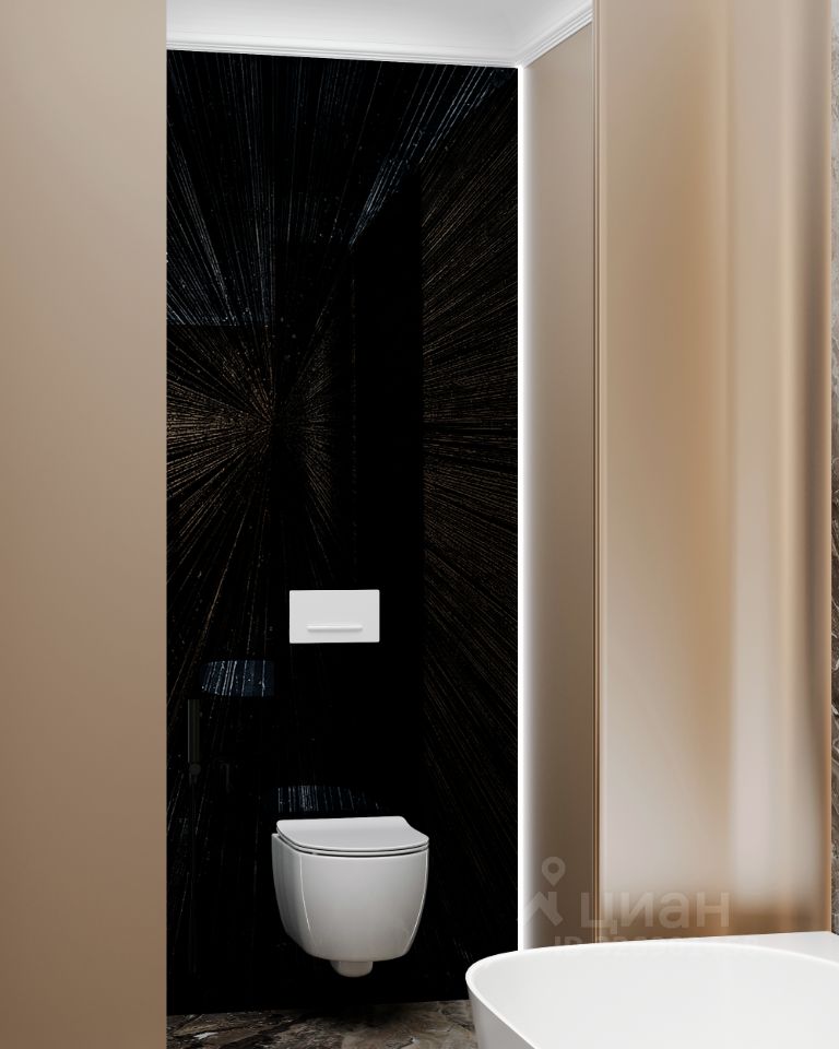 ЖК ''ЗОЛОТОЙ'' 2 — Deluxe квартал в сердце российской истории Планировка квартиры включает три комнаты, два совмещенных санузла и один отдельный санузел, что идеально подходит для семьи или тех, кто ценит комфорт и удобство.