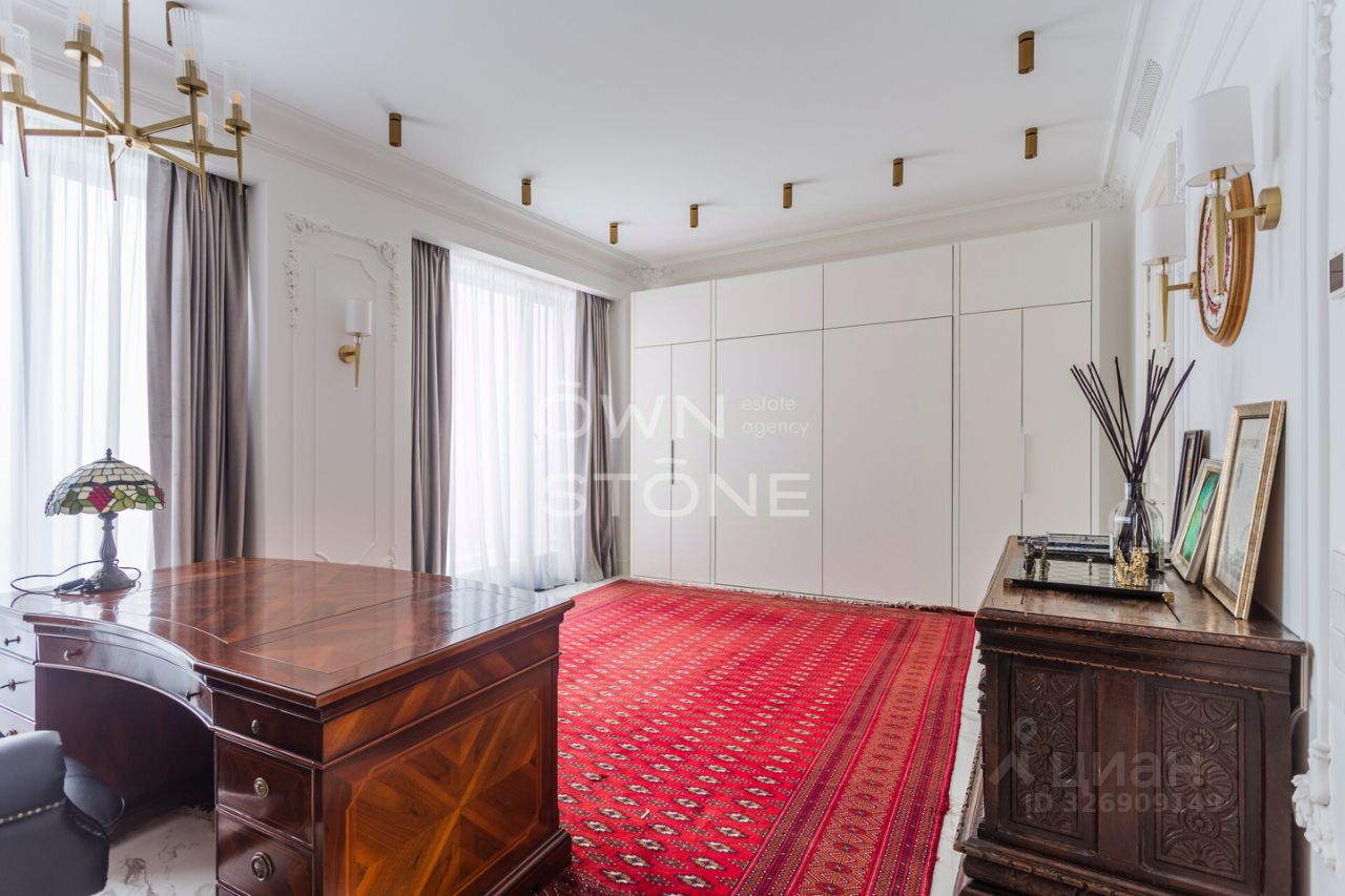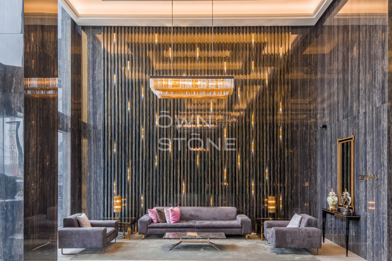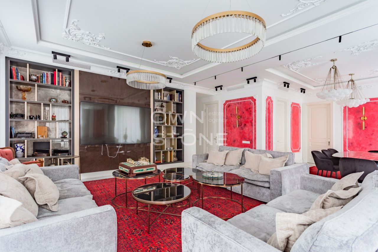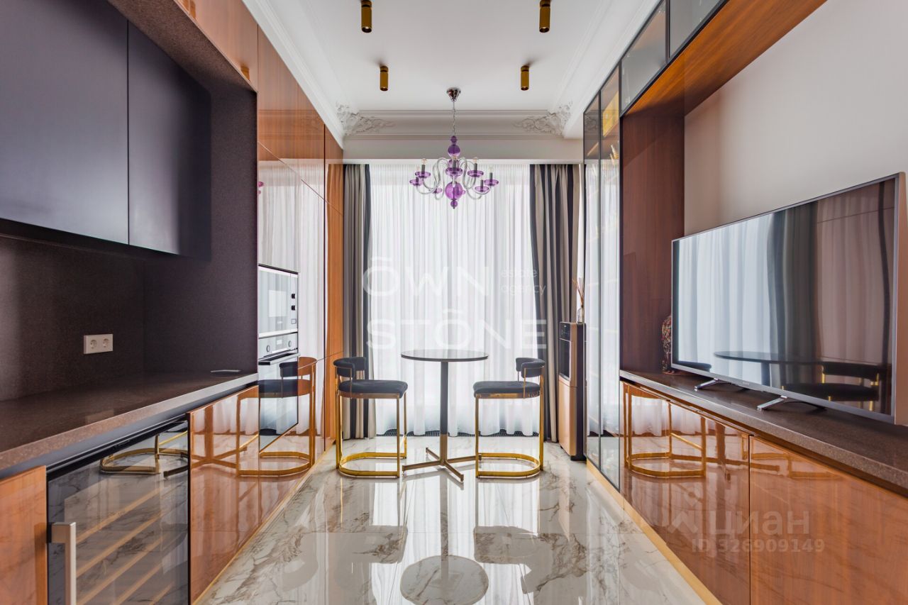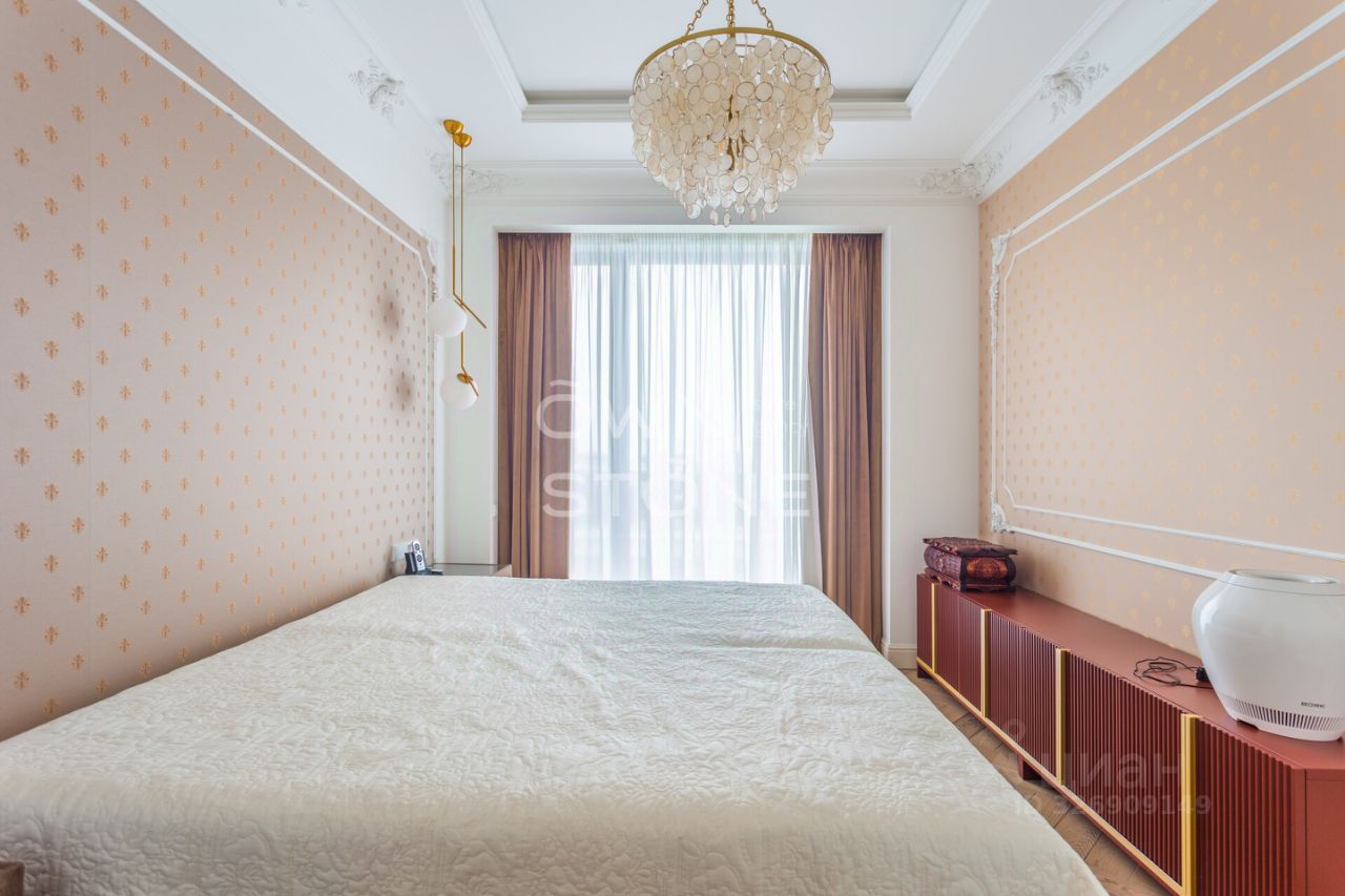 Спланирована угловая гостиная с 4 окнами и обеденной зоной, кухня, мастер-спальня со своей гардеробной и ванной комнатой, кабинет со своим c/у, гостевой санузел, холл и вторая гостевая комната. Квартира полностью меблирована и укомплектована всей необходимой премиальной техникой. Установлена система кондиционирования, стиральная, сушильная и посудомоечная машины. Из окон открывается потрясающий вид на город.