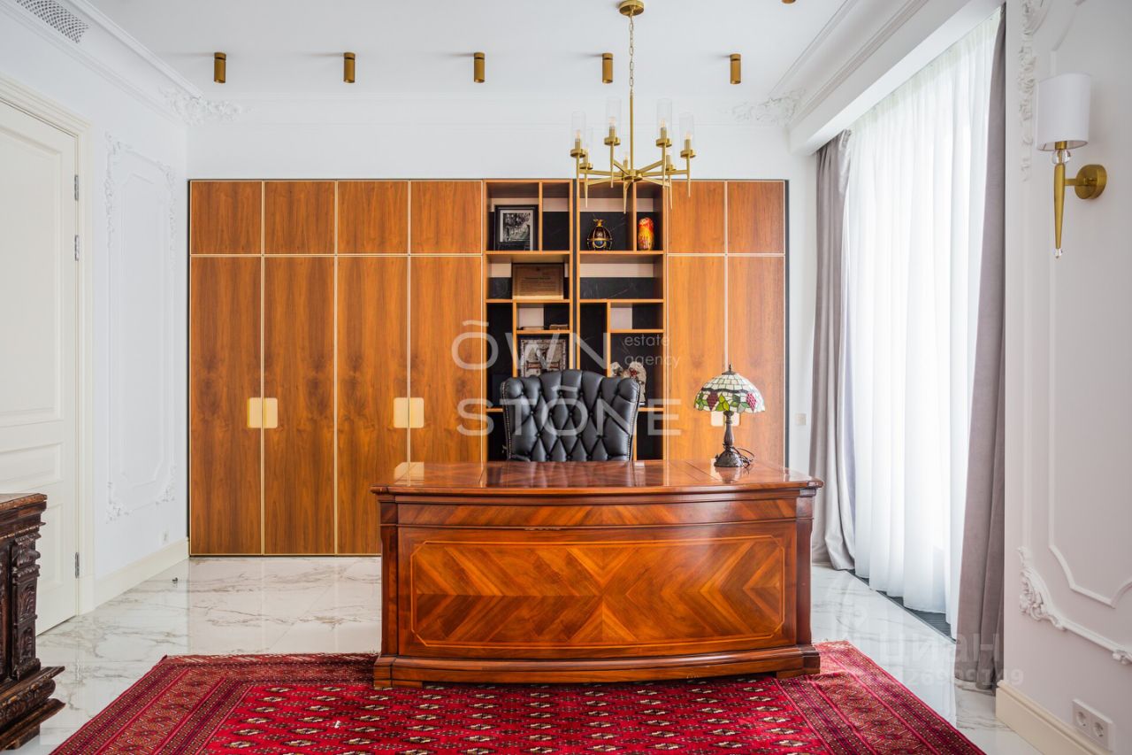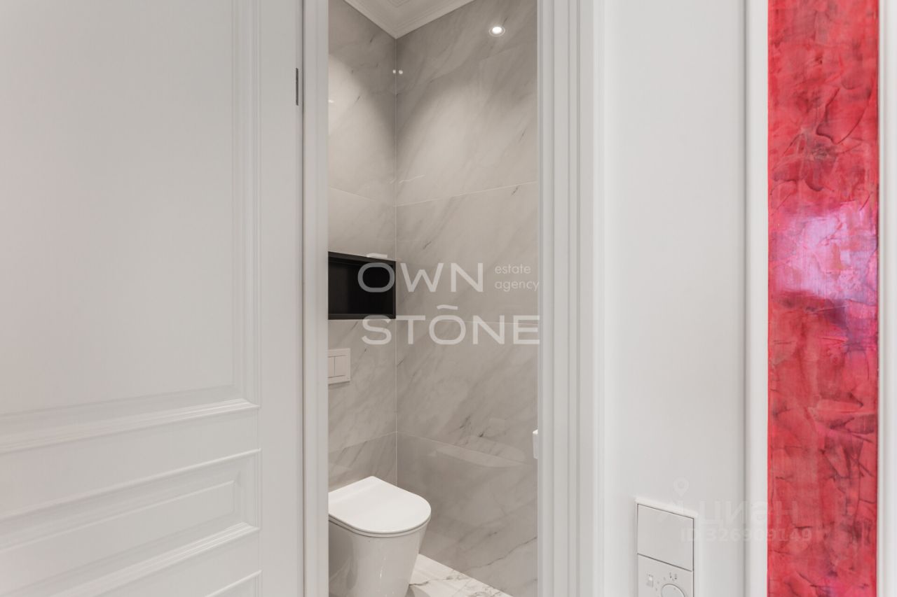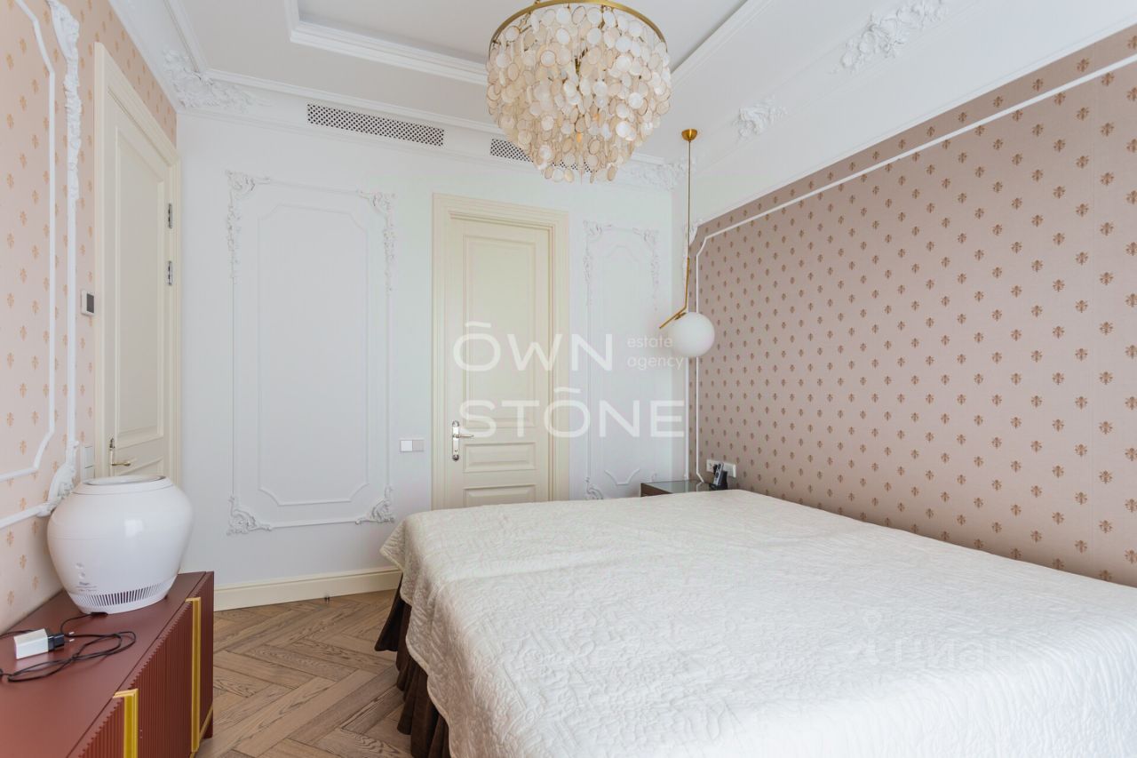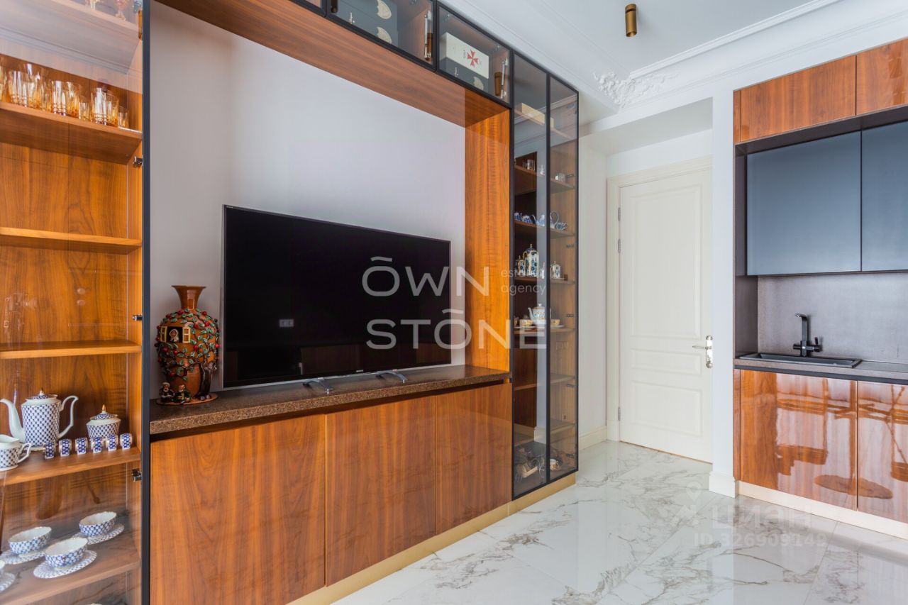 Спланирована угловая гостиная с 4 окнами и обеденной зоной, кухня, мастер-спальня со своей гардеробной и ванной комнатой, кабинет со своим c/у, гостевой санузел, холл и вторая гостевая комната. Квартира полностью меблирована и укомплектована всей необходимой премиальной техникой. Установлена система кондиционирования, стиральная, сушильная и посудомоечная машины. Из окон открывается потрясающий вид на город.