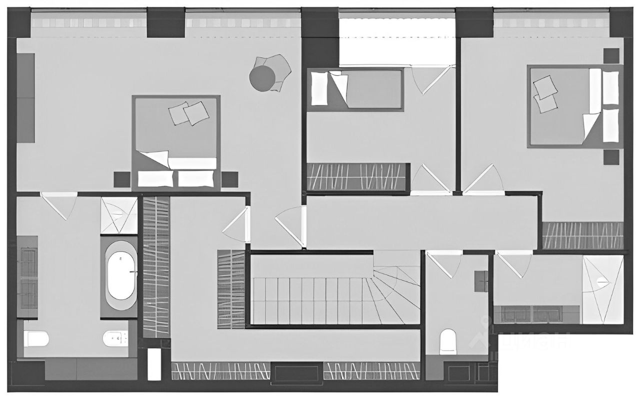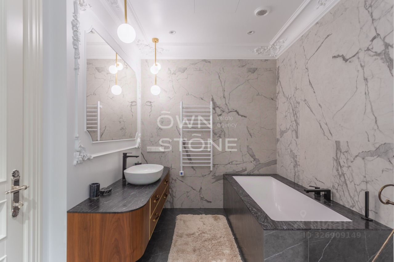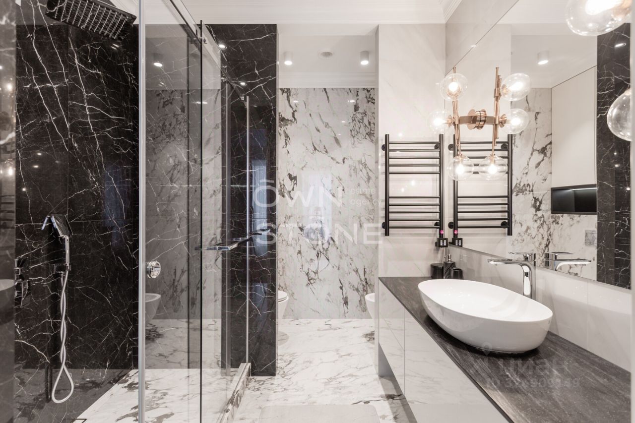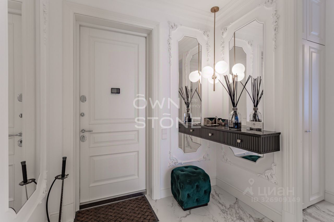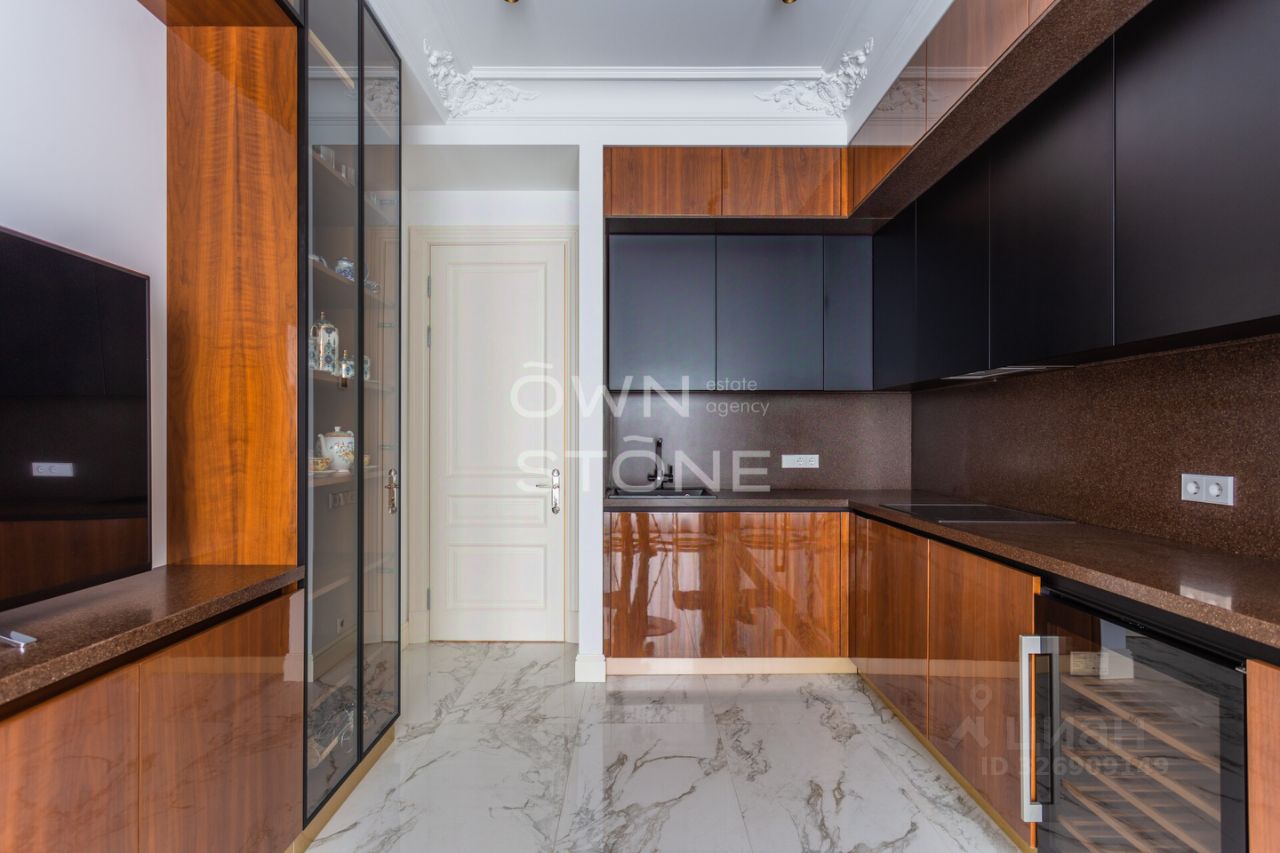 Спланирована угловая гостиная с 4 окнами и обеденной зоной, кухня, мастер-спальня со своей гардеробной и ванной комнатой, кабинет со своим c/у, гостевой санузел, холл и вторая гостевая комната. Квартира полностью меблирована и укомплектована всей необходимой премиальной техникой. Установлена система кондиционирования, стиральная, сушильная и посудомоечная машины. Из окон открывается потрясающий вид на город.
