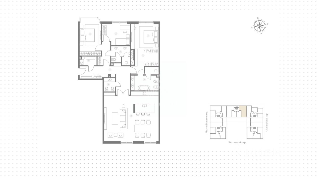 Просторная квартира с 3 спальнями общей площадью 150 м² в клубном доме делюкс-класса ''Тургенев''. Квартира с дизайнерской отделкой расположена на 3 этаже в корпусе 1. Планировка: кухня-гостиная, мастер-спальня с гардеробной и ванной комнатой, 2 спальни, ванная комната, гостевой санузел, постирочная, холл. Окна выходят на две стороны света. За дополнительную плату возможно приобрести машино-место в подземном паркинге.