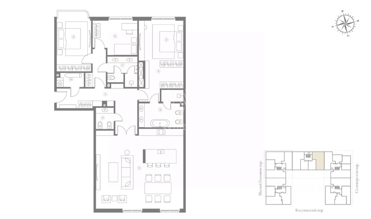 Просторная квартира с 3 спальнями общей площадью 150 м² в клубном доме делюкс-класса ''Тургенев''. Квартира с дизайнерской отделкой расположена на 3 этаже в корпусе 1. Планировка: кухня-гостиная, мастер-спальня с гардеробной и ванной комнатой, 2 спальни, ванная комната, гостевой санузел, постирочная, холл. Окна выходят на две стороны света. За дополнительную плату возможно приобрести машино-место в подземном паркинге.