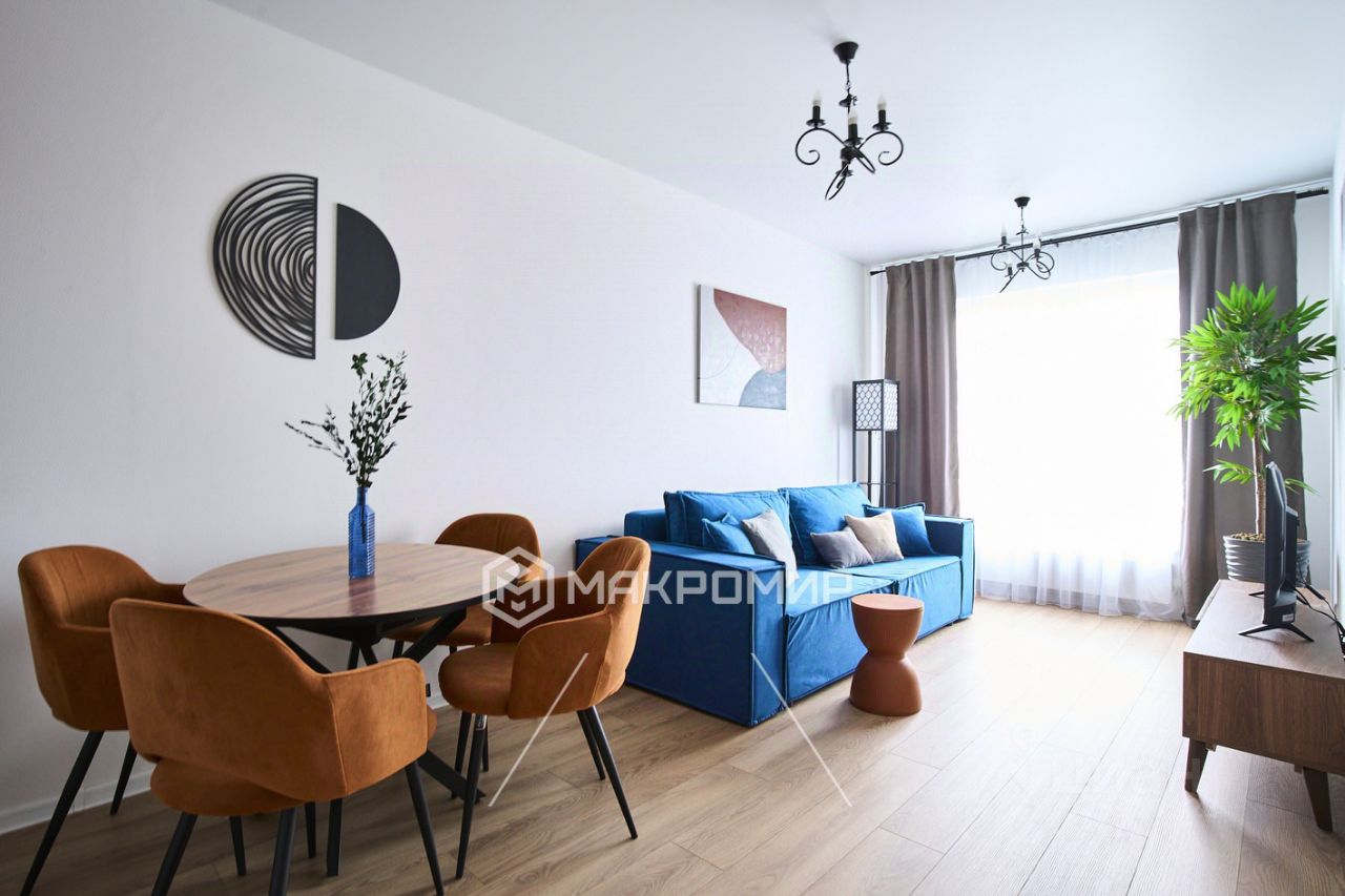 Квартира в новом доме с видом на городские пейзажи. Просторная кухня-гостиная площадью 20 м², идеальное пространство для семейных ужинов и приема гостей. Полностью оборудованная мебелью и бытовой техникой, готова принять новых жильцов сразу же после подписания договора аренды. Качественный евроремонт выполнен с заботой о будущих жителях.
