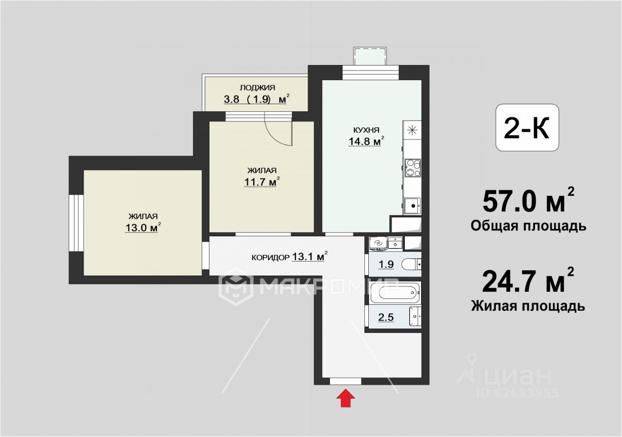 Мы не просто сдали объект. Мы создали дом, в который можно заселяться сегодня. 57 м² свободы: Простор для жизни, творчества и роста вашей семьи. Здесь каждый найдет свой уголок. 2 ИЗОЛИРОВАННЫЕ спальни (12 и 13 м²): Гарантия личного пространства и спокойного отдыха. Больше никаких проходных комнат — только ваше уединение.