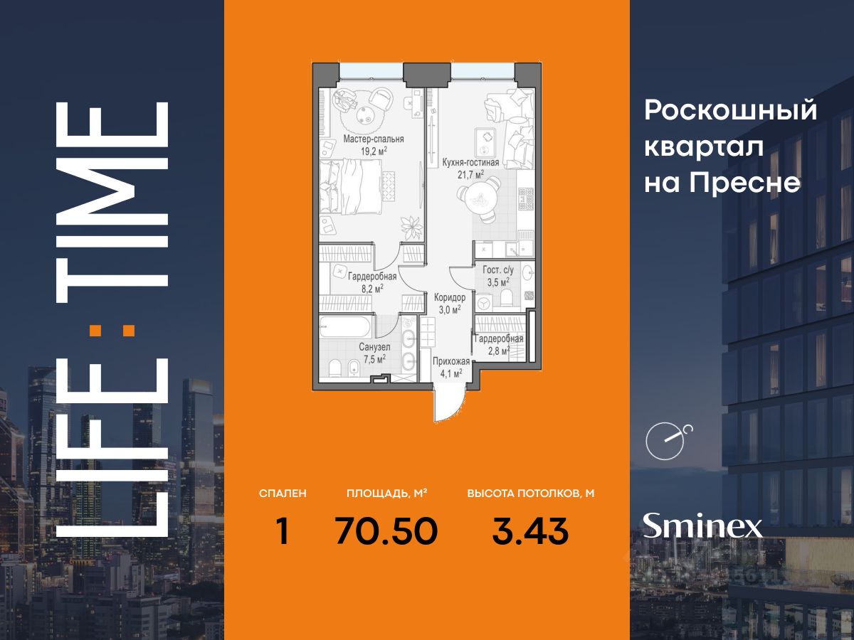 Life Time - роскошный современный квартал на Пресне, в наиболее быстро растущем премиальном районе ЦАО. Его насыщенная инфраструктура и выгодное расположение дарят время для жизни. Вы больше не тратите его на дорогу или ожидание, при этом ни в чём себе не отказывая. На территории предусмотрено всё для комфортной жизни: • двор-парк площадью 1,8 гектара с прудом и фонтанами, • Clubhouse - инфраструктурный центр в отдельном здании с исчерпывающими возможностями для спорта, отдыха и досуга только для жителей, • спортивная инфраструктура на улице и в помещении, в том числе бассейн длиной 25 метров, хот-таб, хаммам, сауна, бьюти-зона, • клубная гостиная с террасой, • всё для развития и досуга детей любого возраста, в том числе детский сад и школа. Life Time находится в центре сложившегося премиального района, в окружении многочисленных парков. Удобная транспортная доступность и прямой выезд на Звенигородское шоссе позволяют без проблем добраться до Садового кольца и Москва-Сити. Архитектурный стиль квартала - роскошный минимализм. Дома десятилетиями будут выглядеть современно.